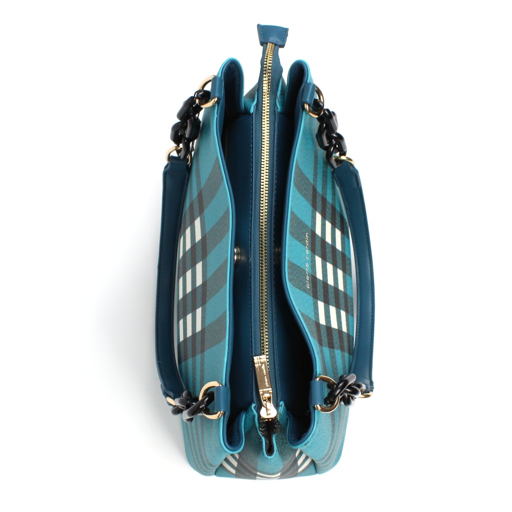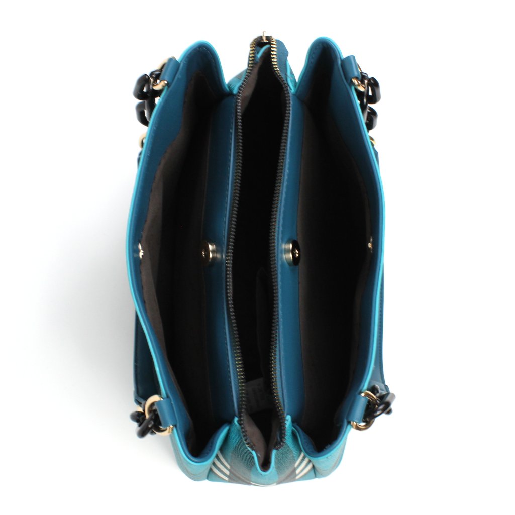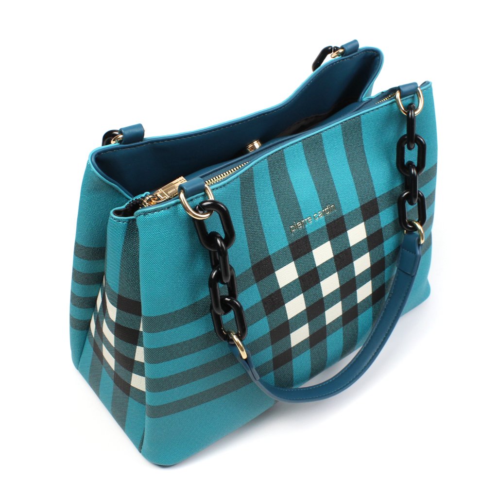 Borsa a spalla Pierre Cardin azzurra Scacchi in similpelle, presenta un design a quadri molto originale. I manici superiori permettono di indossarla comodamente a spalla, offrendo praticitร nell’uso quotidiano. Divisa in tre ampi scomparti, due chiusi con bottone magnetico mentre il centrale รจ chiuso con cerniera, inoltre, sono presenti tre taschini interni, di cui uno con zip, perfetti per riporre oggetti di piccole dimensioni in modo sicuro. I dettagli metallici dorati con logo inciso, aggiungono un tocco di raffinatezza, mentre la fantasia a scacchi la rendono un accessorio moderno e originale. Borsa a spalla Pierre Cardin azzurra Scacchi รจ ideale per outfit casual ma anche per occasioni piรน formali ed eleganti.