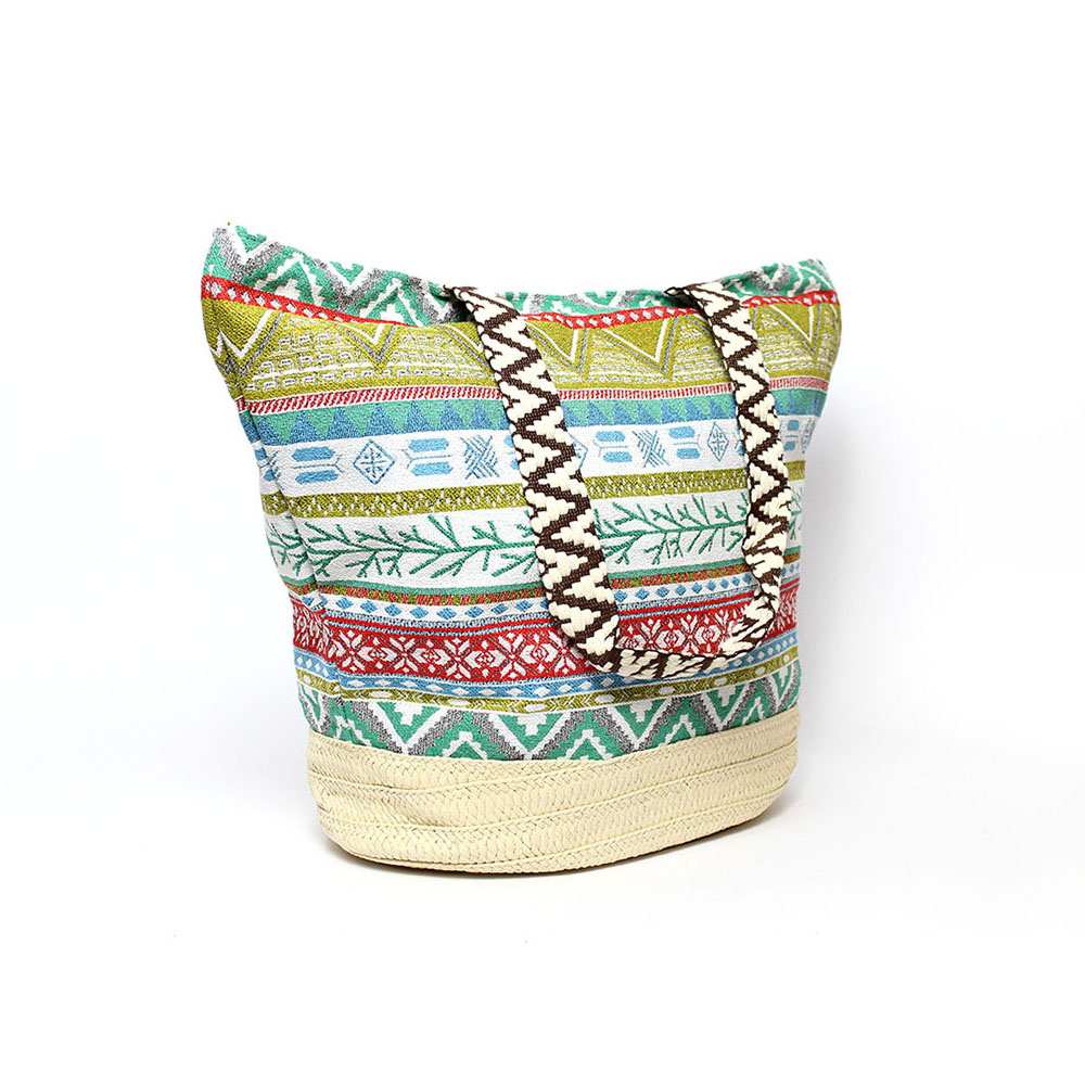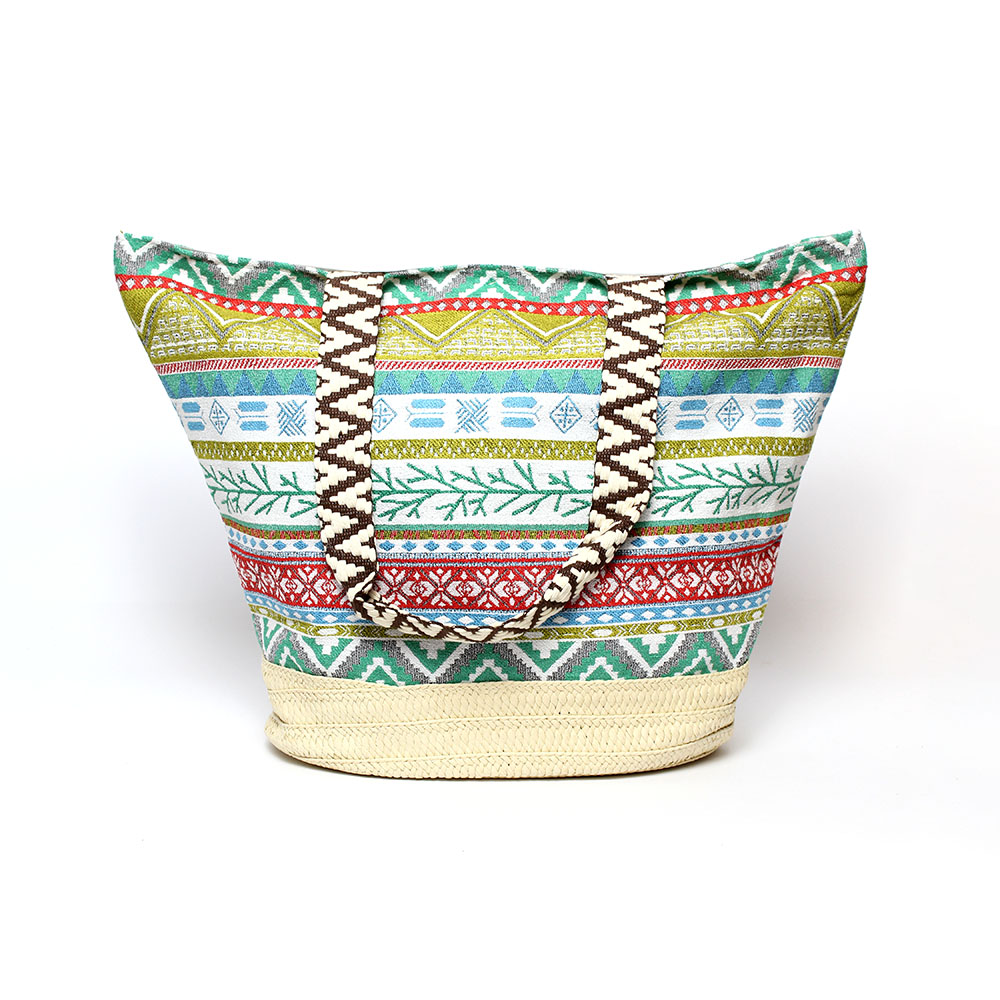 Borsa a spalla verde Kevin Jeans etnica è realizzata in cotone e paglia, colorata e con fantasia etnica.