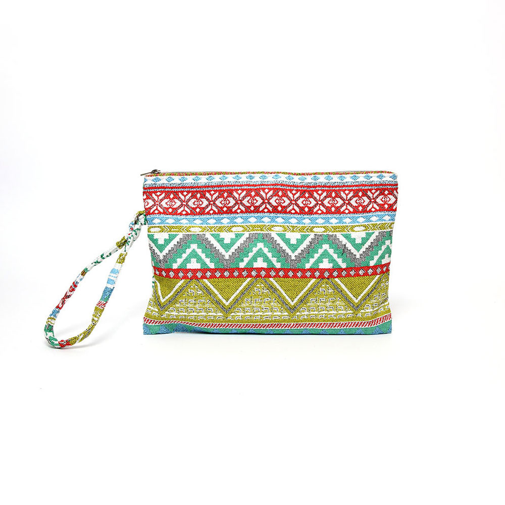 Borsa a spalla verde Kevin Jeans in cotone con pochette Etnica