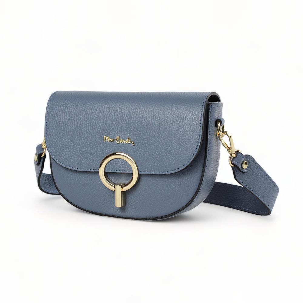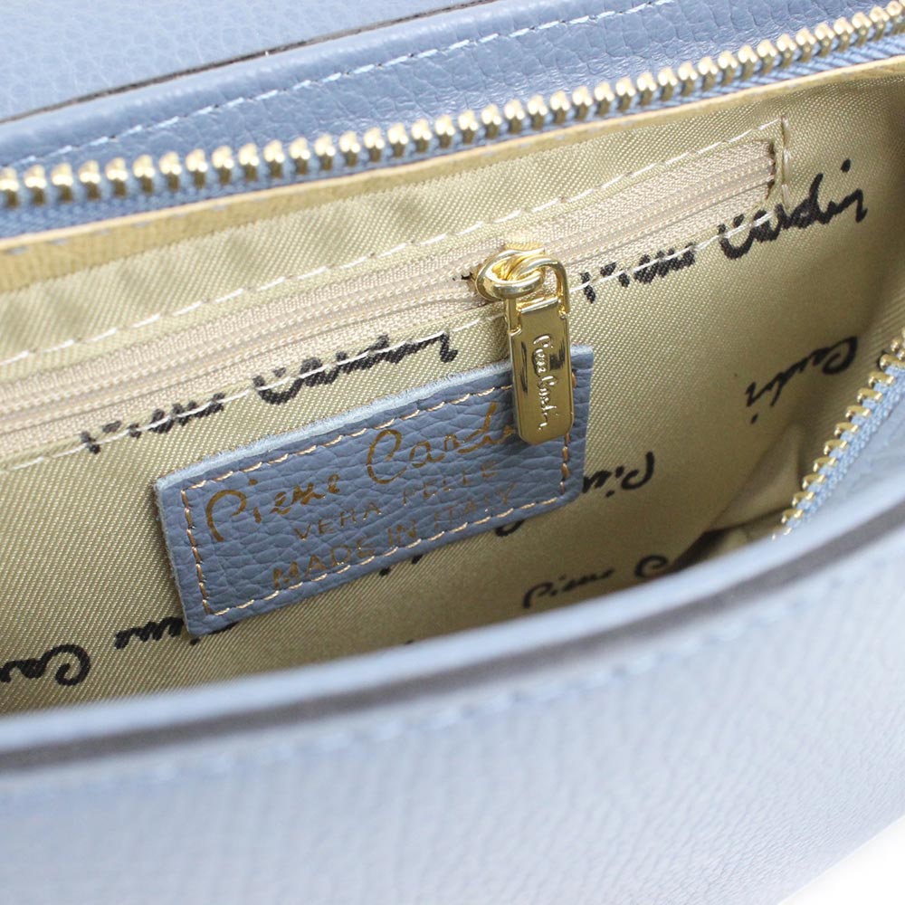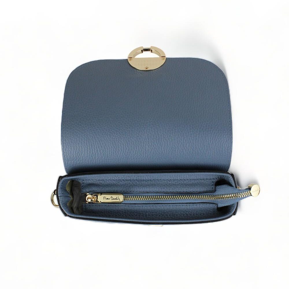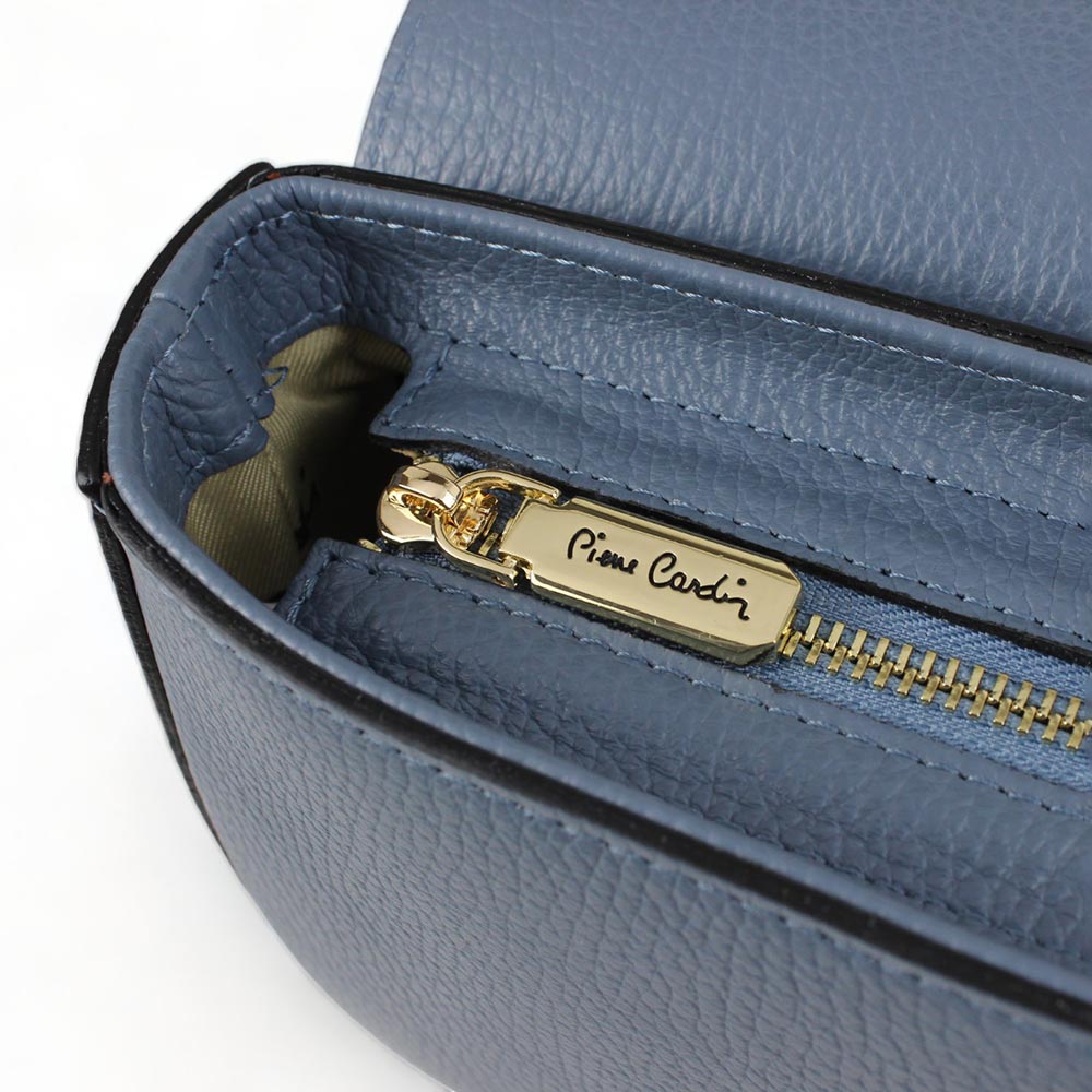 Borsa blu in pelle dollaro Pierre Cardin made in Italy con logo frontale.