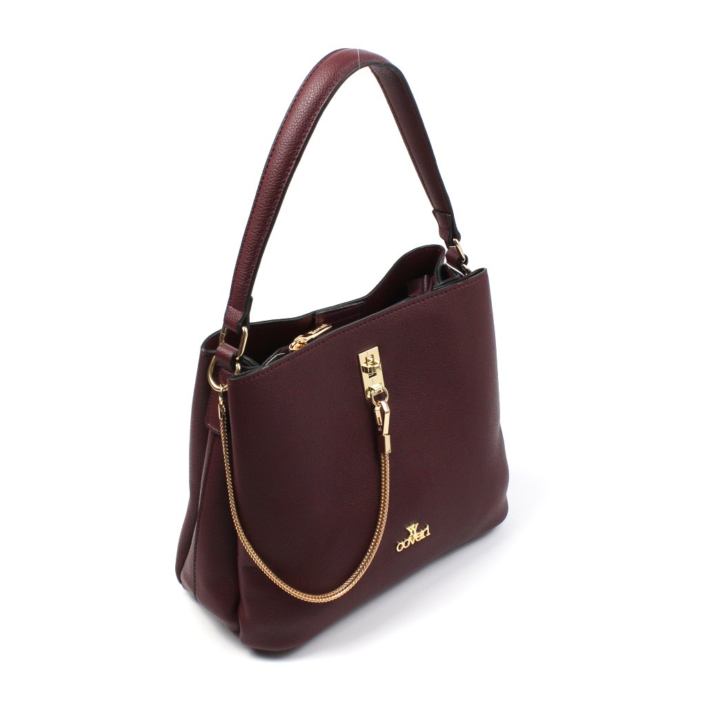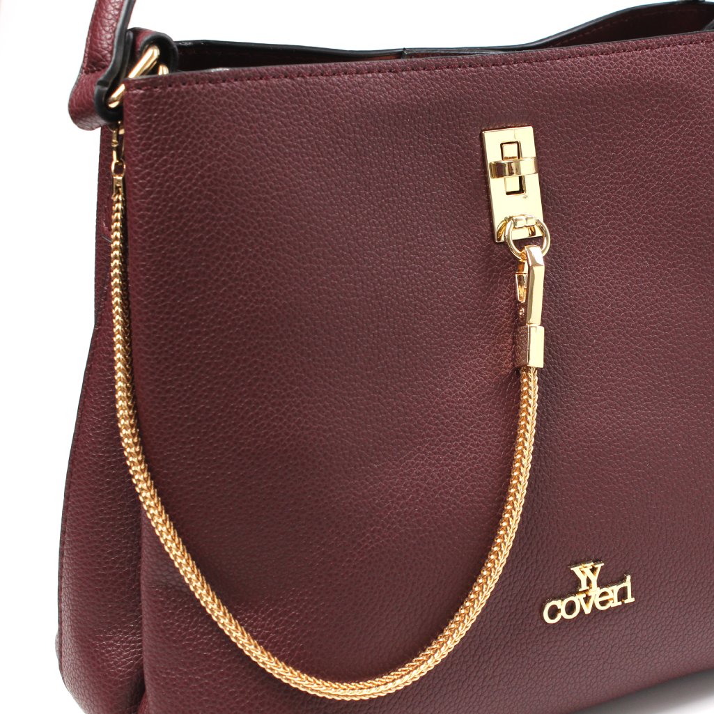 Borsa bordeaux a mano Coveri in similpelle con catena oro