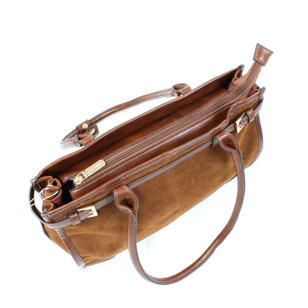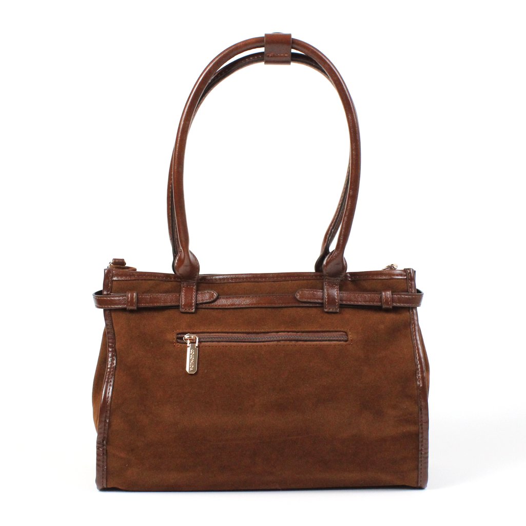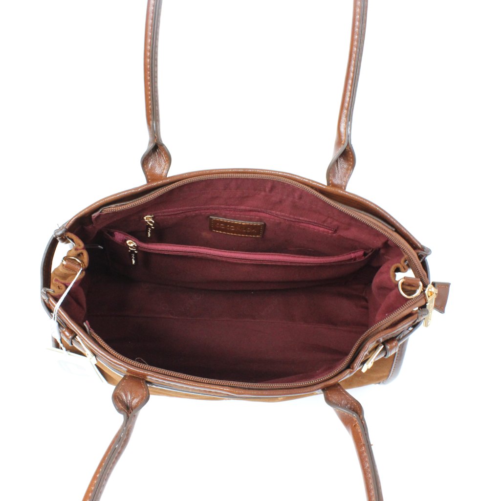 Borsa Coconuda marrone in velluto con doppio manico, realizzata in morbido velluto marrone, arricchito da dettagli in similpelle tono su tono. Le doppie maniglie, robuste e confortevoli, permettono di indossarla comodamente a spalla o a mano, inoltre, รจ dotata di tracolla rimovibile e regolabile. La forma strutturata e capiente la rende ideale per accompagnarti durante la giornata, perfetta sia per il lavoro che per il tempo libero, mantenendo sempre un look elegante e curato. Lโ€™interno della borsa รจ foderato in tessuto brandizzato, impreziosito dal logo tono su tono. Lo spazio รจ ampio e ben organizzato, pensato per contenere tutto il necessario. Dispone di una pratica tasca centrale con chiusura a zip che divide il vano principale, ideale per riporre gli oggetti piรน importanti. Ai lati sono presenti ulteriori tasche, una con zip per custodire piccoli accessori e due aperte per avere sempre a portata di mano smartphone, chiavi o altri oggetti di uso quotidiano.