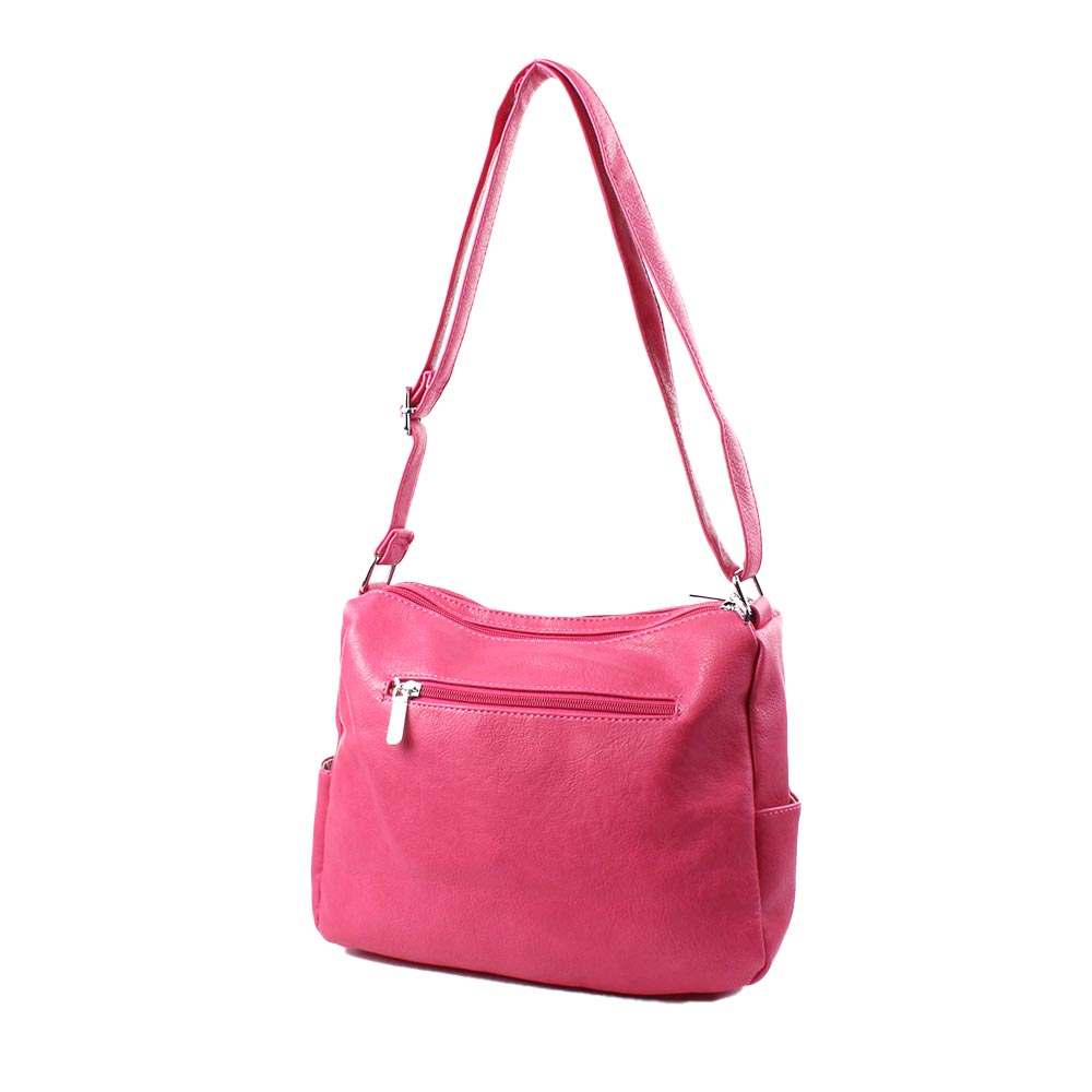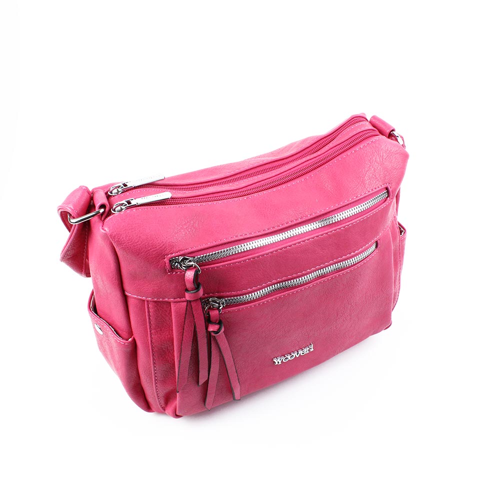 Borsa Coveri fucsia con tasche e tracolla regolabile.