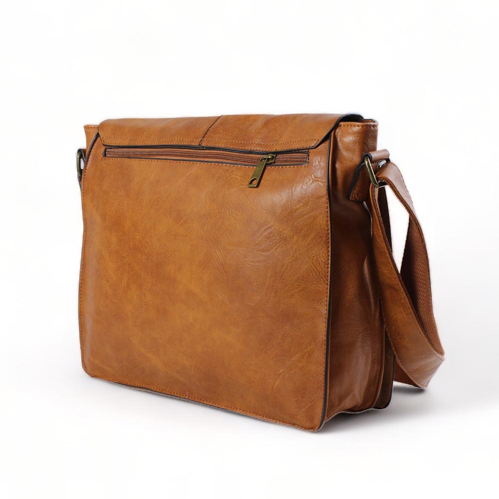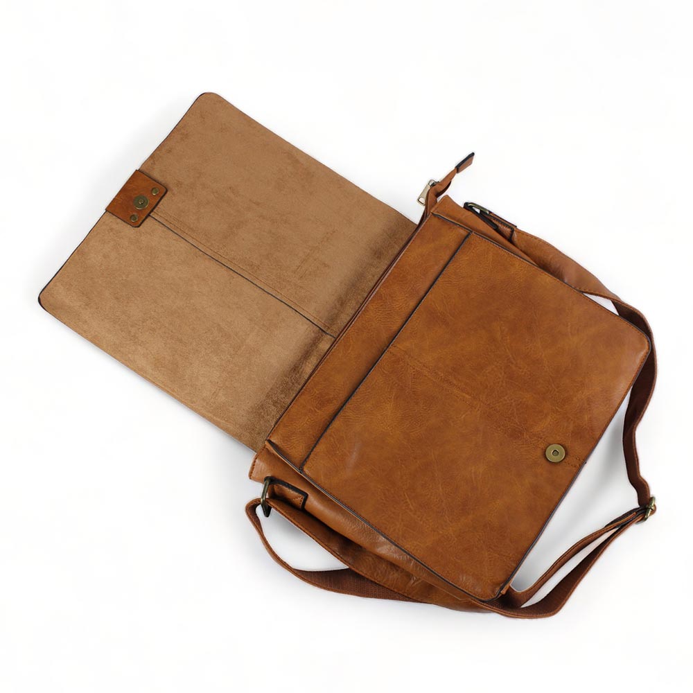 Borsa da uomo marrone grande in pelle sintetica con tracolla regolabile.
