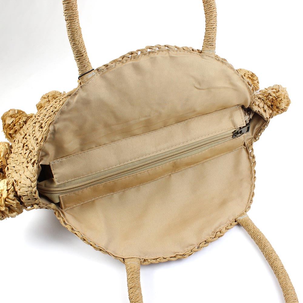 Borsa in paglia rotonda beige con pompon Kevin Jeans