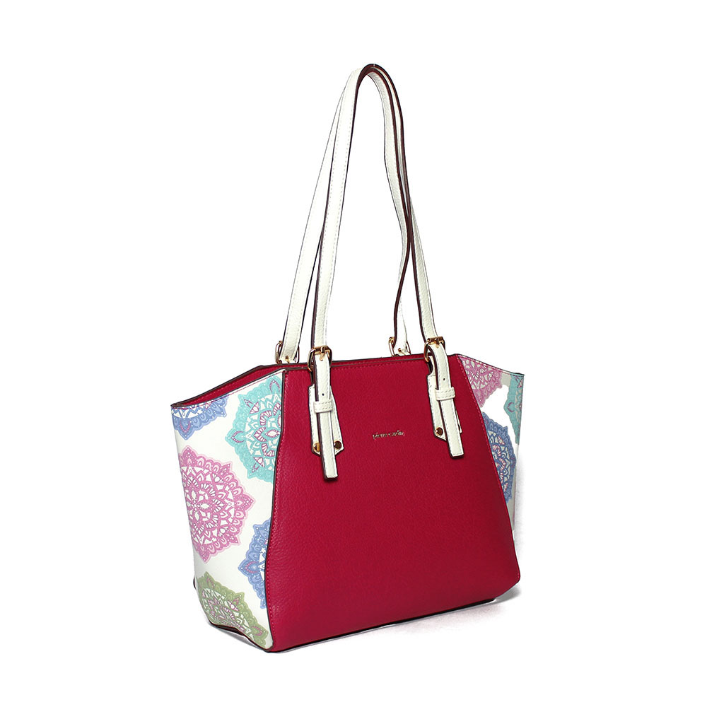 Borsa Pierre Cardin fucsia Flowers realizzata in pelle sintetica con particolare fantasia floreale e geometrica. Un design innovativo dai colori freschi e delicati.