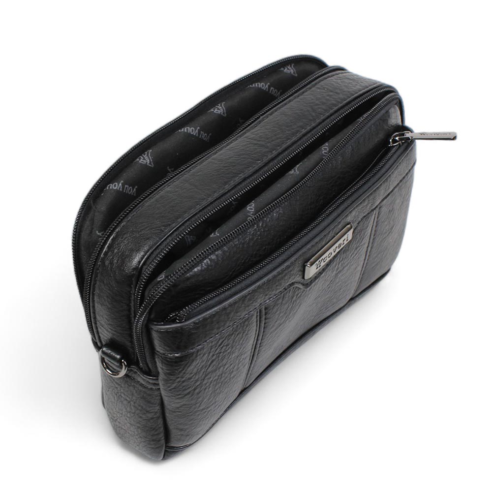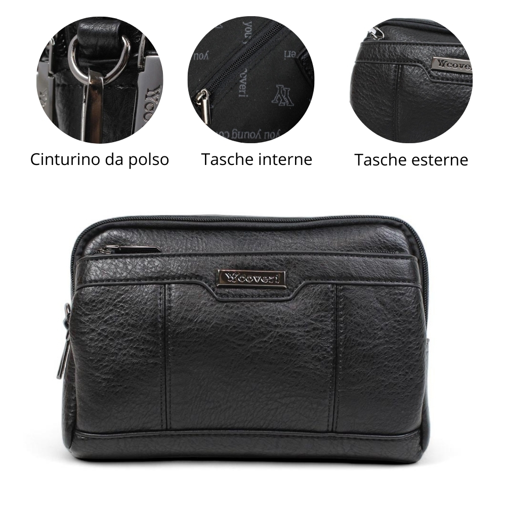 Borsello Coveri nero con cinturino da polso in ecopelle con tre scomparti.