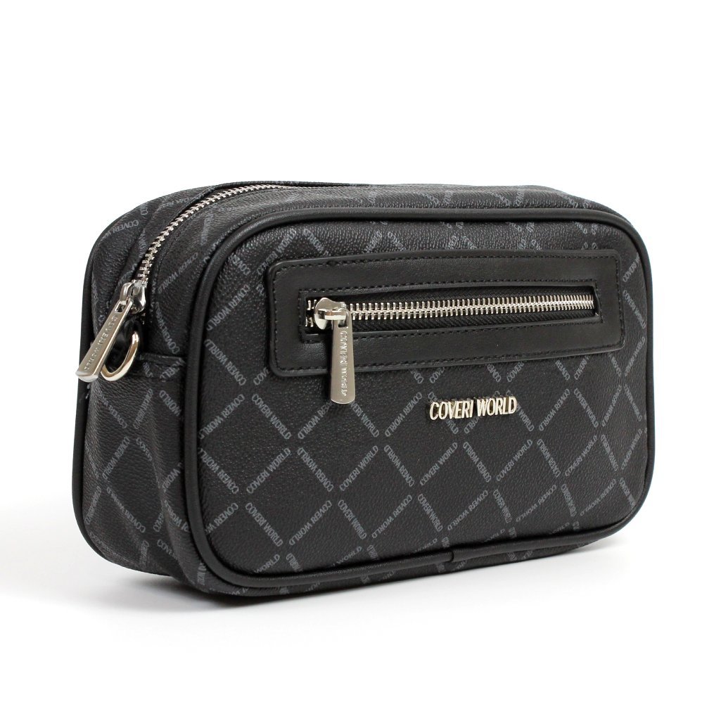 Borsello Coveri World nero con laccetto da polso in pelle sintetica con logo frontale. Il borsello presenta al suo interno un grande scomparto con due tasche, una aperta ed una chiusa con zip. Tutte le rifiniture metalliche sono in color argento. Esternamente รจ dotato di tasca anteriore e tasca posteriore con cerniera, comodo e pratico.