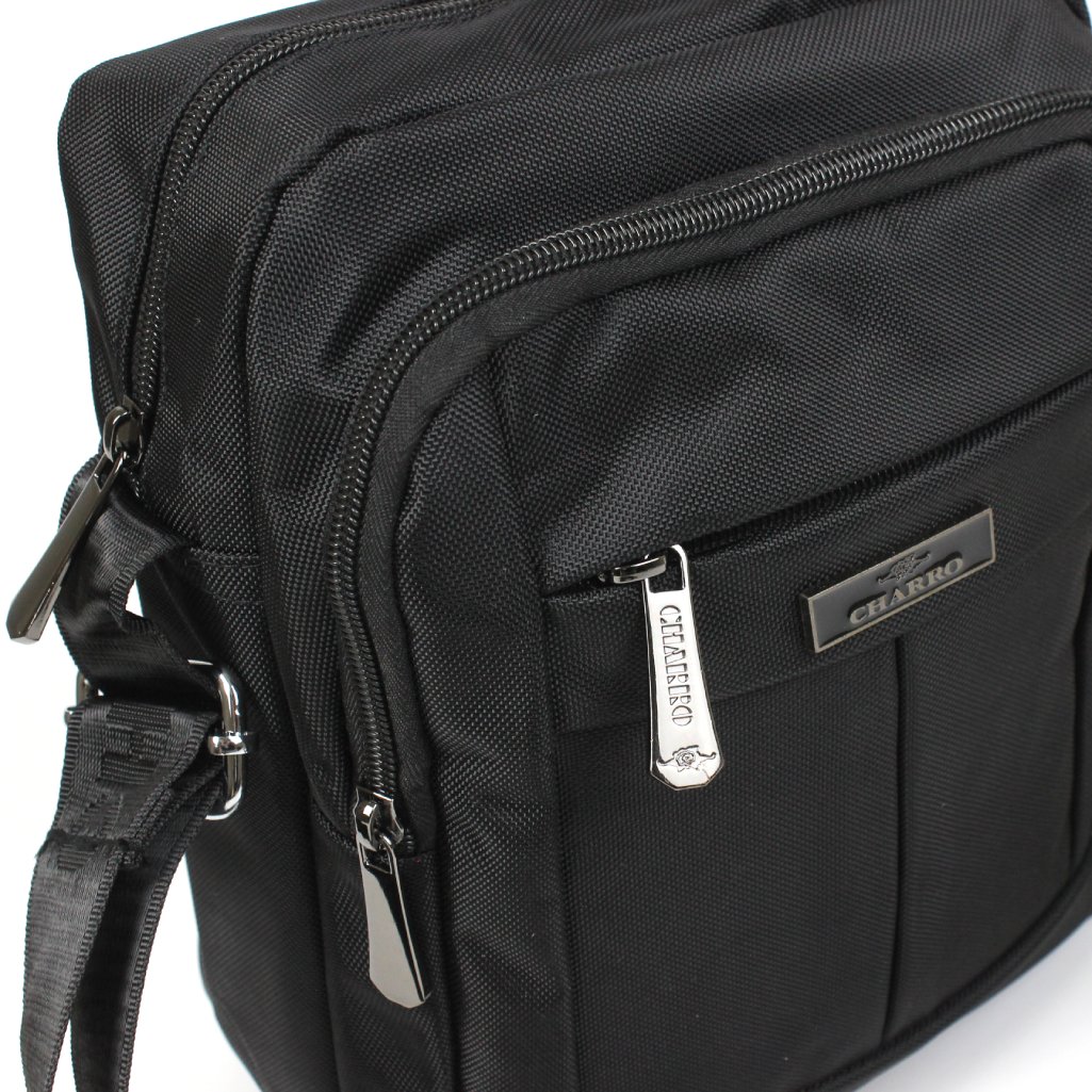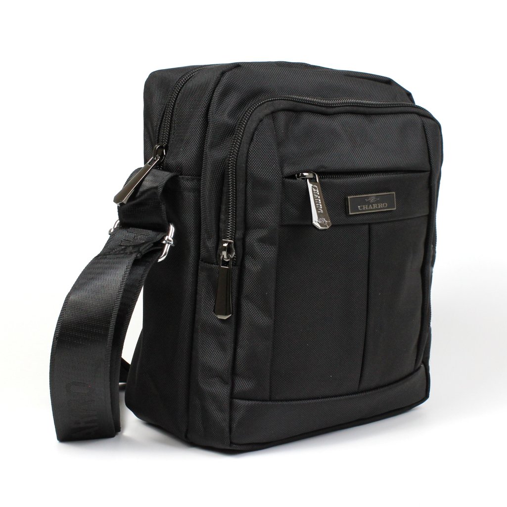 Borsello nero Charro multitasche in nylon, perfetto per chi ama avere tutto in sicurezza senza rinunciare al comfort. Tracolla regolabile, due ampi scomparti chiusi con cerniera. Al suo interno troviamo una fodera nera e un comodo taschino con zip. Il borsello presenta inoltre due ulteriori tasche con cerniera, una posta sul retro ed una sulla parte frontale, comode per avere gli oggetti a portata di mano.