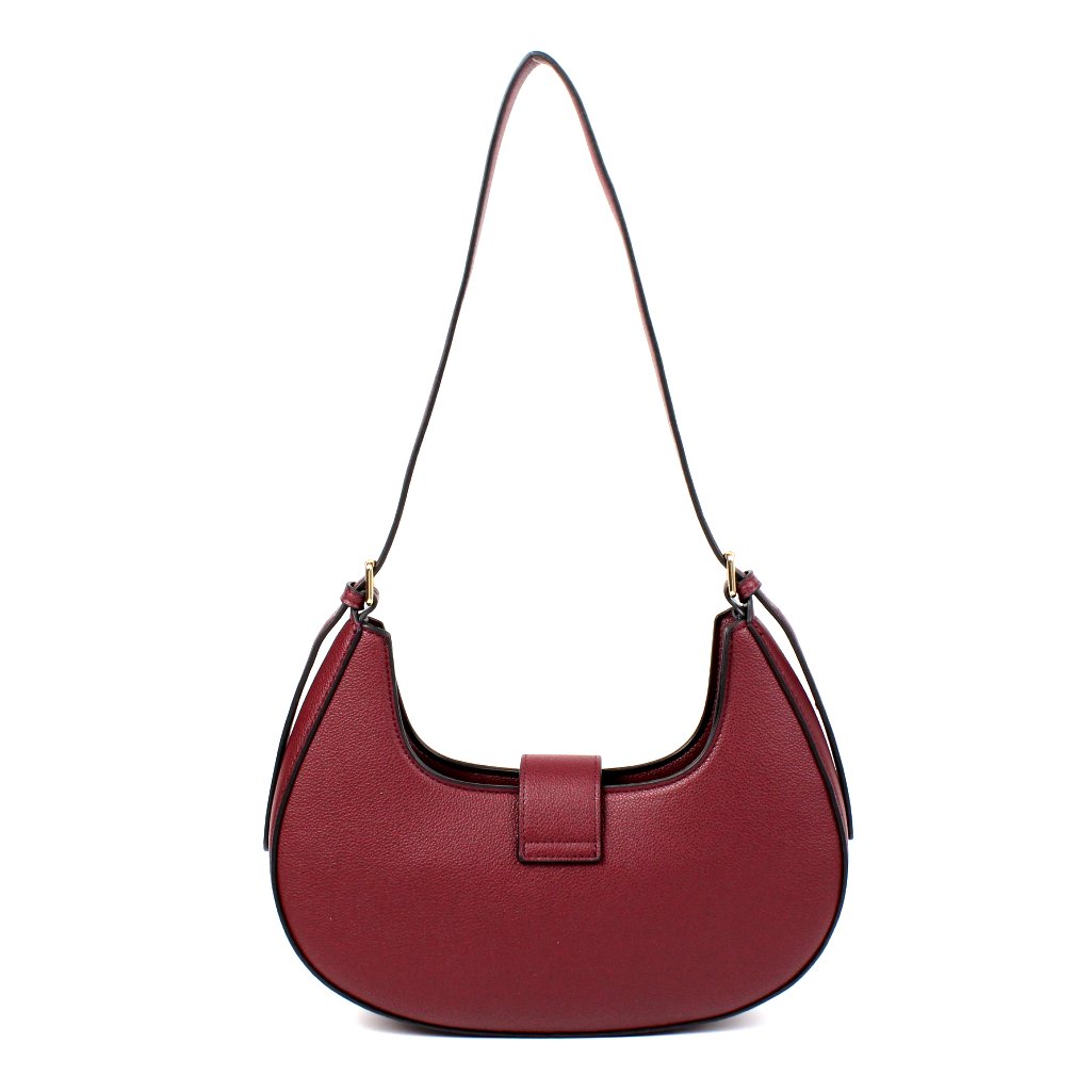 Borsetta a spalla bordeaux Pierre Cardin con fibbie elegante e raffinata, realizzata in ecopelle dalla texture leggermente martellata. La chiusura frontale a girello è valorizzata da un dettaglio in metallo dorato con logo, che dona un tocco di lusso al design. L’interno è foderato con tessuto brandizzato e include un pratico taschino con chiusura a zip, ideale per custodire gli oggetti più piccoli in sicurezza. La spallina è regolabile su cinque fori grazie alle fibbie laterali in metallo dorato, permettendo di adattare la vestibilità in base alle proprie esigenze. Una borsa dallo stile contemporaneo, perfetta per completare look da giorno e da sera.