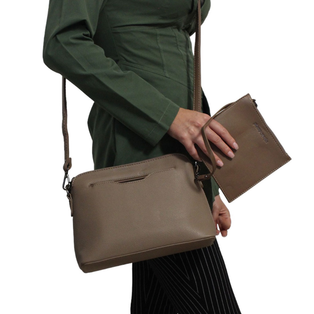 Borsetta beige a tracolla Pierre Cardin con pochette removibile