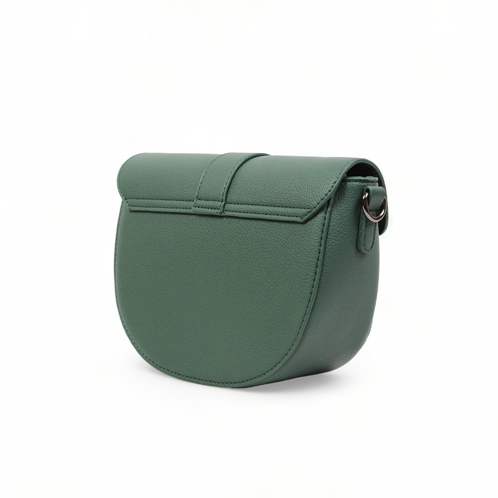 L’intera borsetta con tracolla verde è foderata in un elegante tessuto testa di moro che le conferisce un ulteriore tocco di classe.