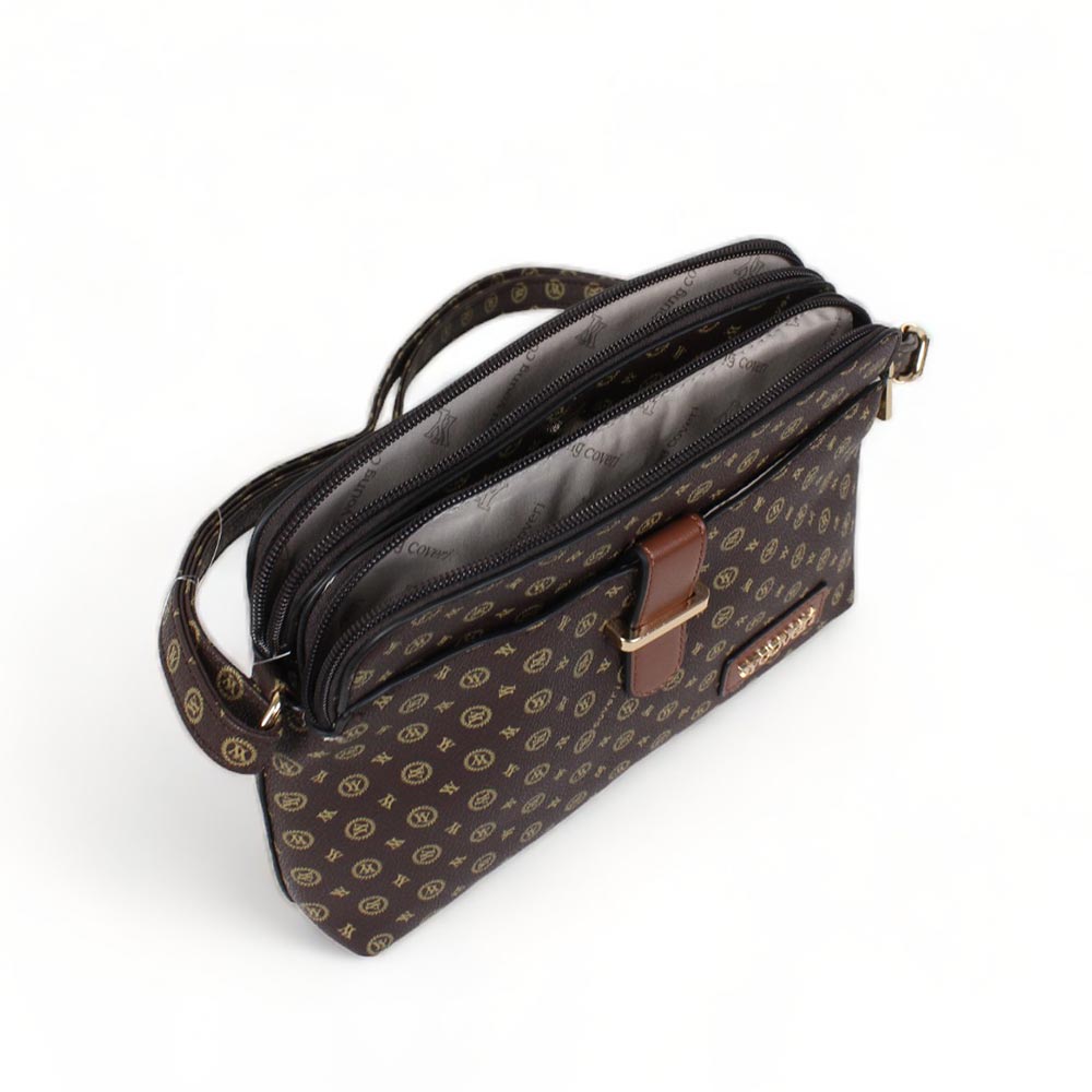 Borsetta Coveri marrone con tre scomparti della linea YY COVERI.