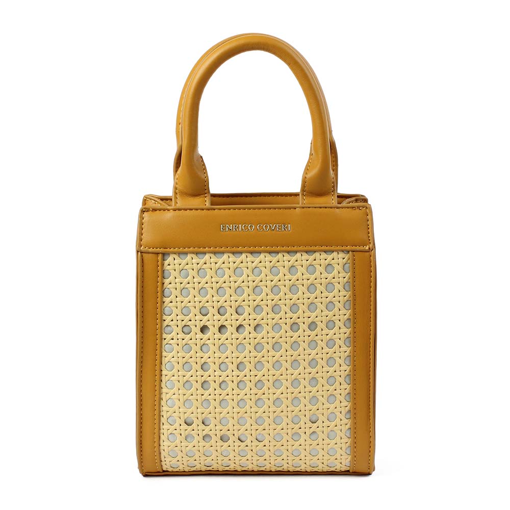 Borsetta Enrico Coveri marrone con fantasia paglia