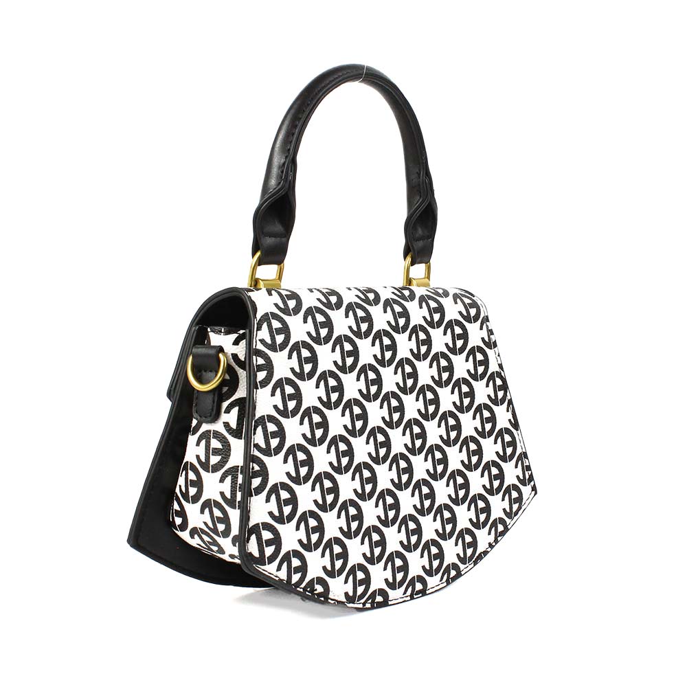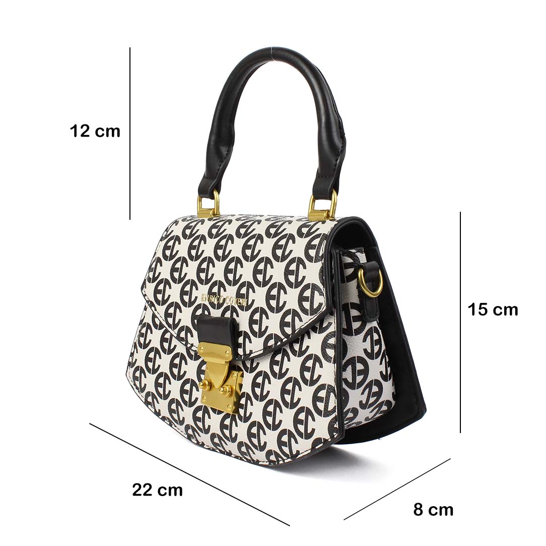 Borsetta nera Enrico Coveri con logo, un accessorio che unisce eleganza e praticità in un design distintivo. L’interno sfoderato in bianco e nero, è progettato per offrire massima funzionalità con due pratiche tasche, una aperta e una con cerniera, ideali per organizzare i tuoi effetti personali in modo efficiente. La borsetta è dotata di una tracolla regolabile e rimovibile, permettendoti di portarla a mano o a spalla secondo le tue esigenze. La borsetta è rifinita con dettagli dorati e una chiusura a scatto sicura. Questa borsetta è ideale per outfit casual ma anche per occasioni più formali ed eleganti.