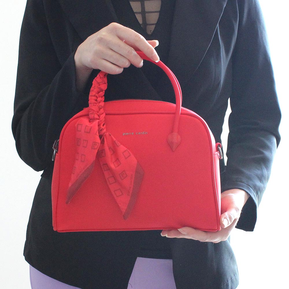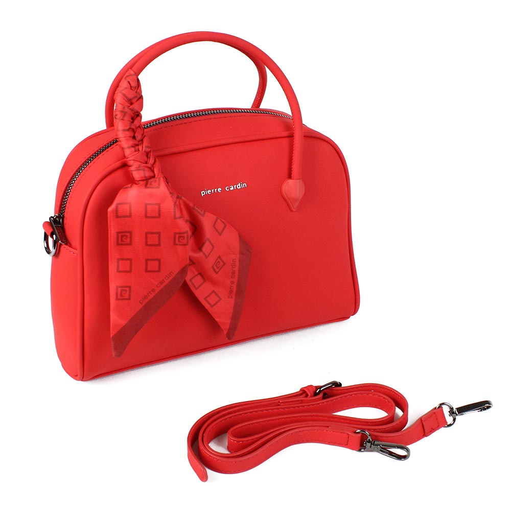 Borsetta rossa con foulard Pierre Cardin Soft è realizzata in morbida similpelle di alta qualità con una struttura semirigida.