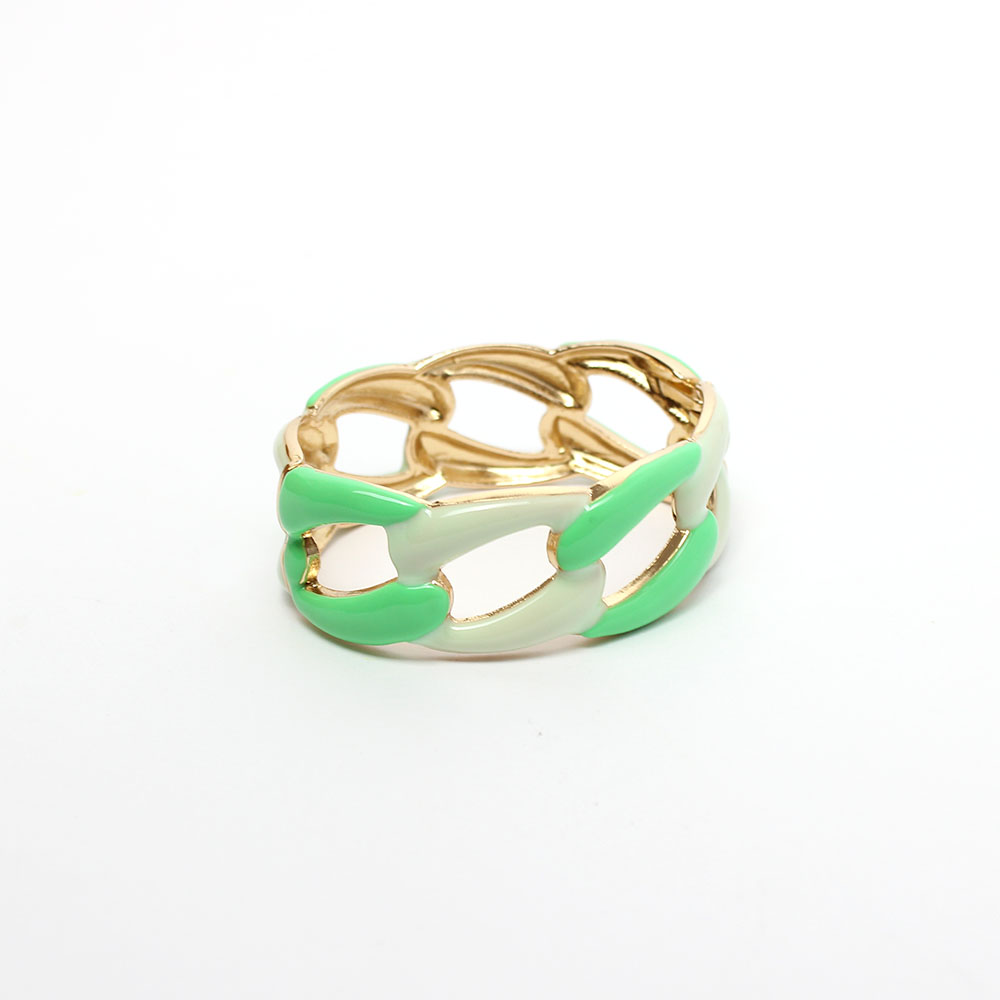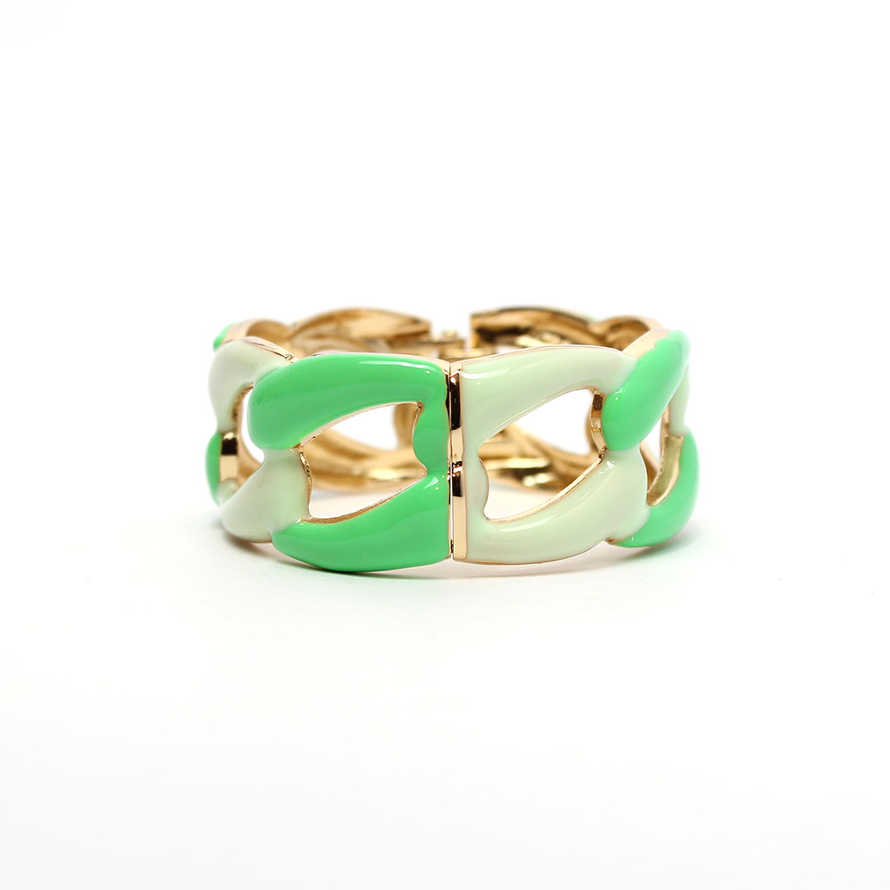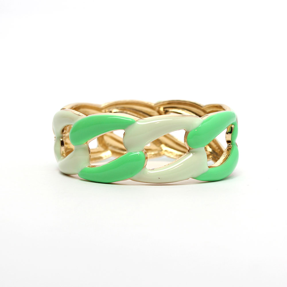 Bracciale catena rigido verde bicolore Nives è realizzato in lega metallica color oro.