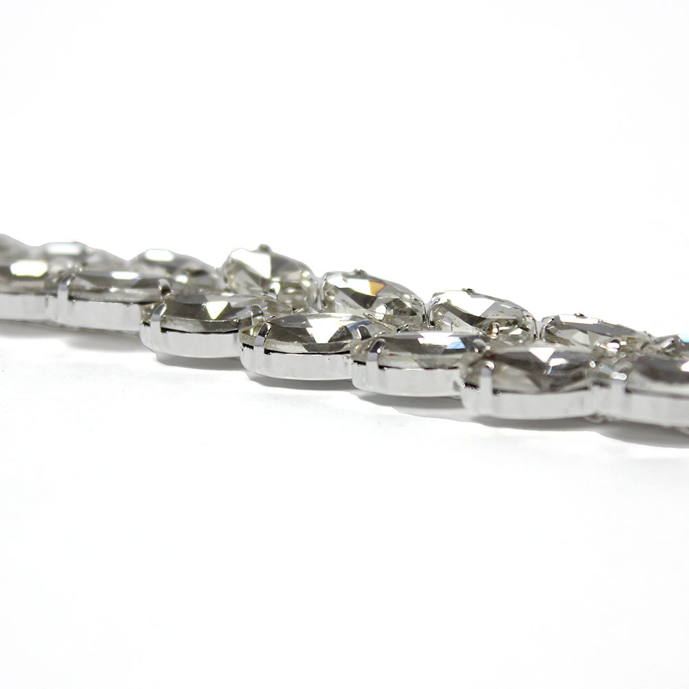 Bracciale con pietre cristalli argento Goccia è un elegante bracciale in pietre sfaccettate incastonate su una delicata base in ottone e acciaio. La chiusura è a moschettone.Il bracciale ha una lunghezza minima di 17 cm ma può essere regolato fino a 24 grazie alla catenina extra di 7 cm.