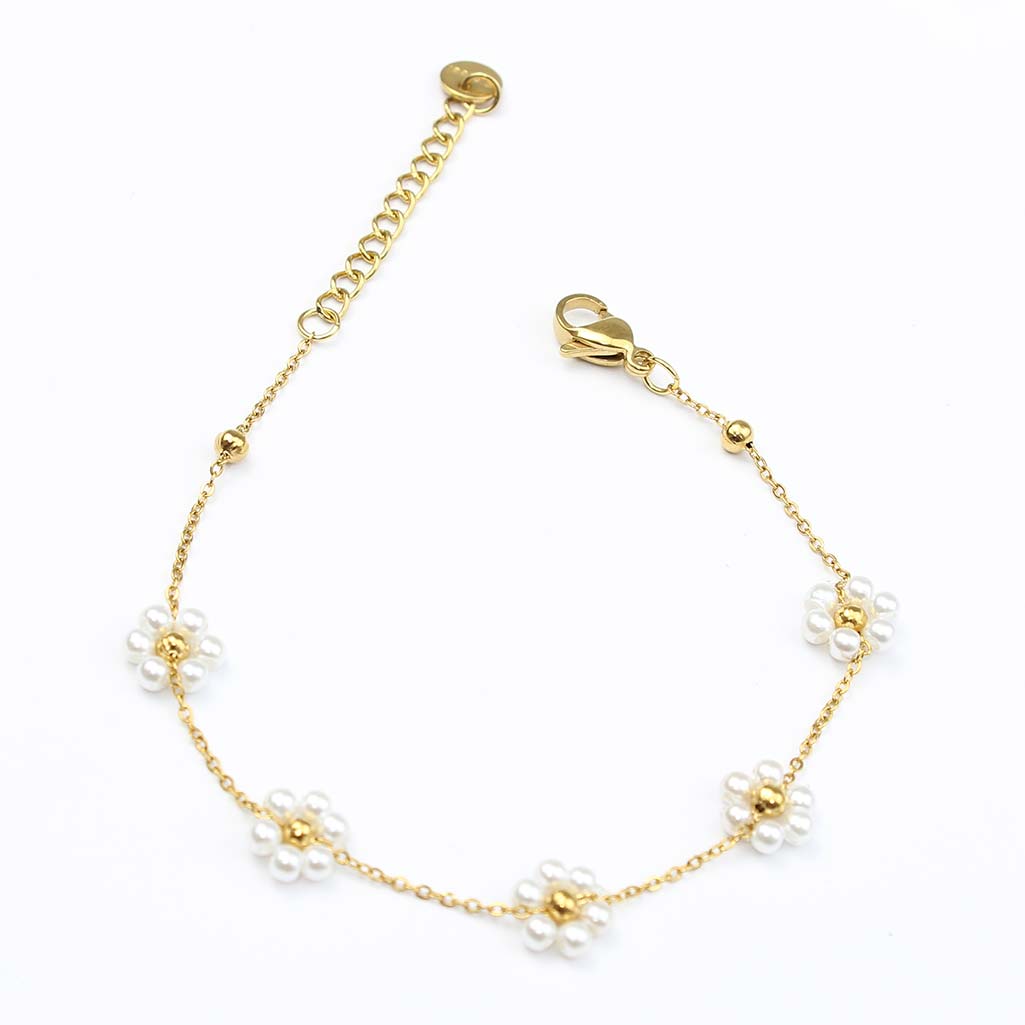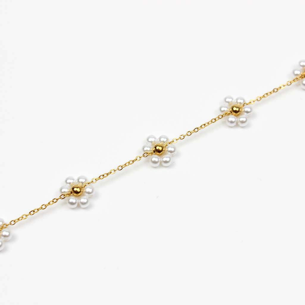 Bracciale oro in perle con fiori Margherita