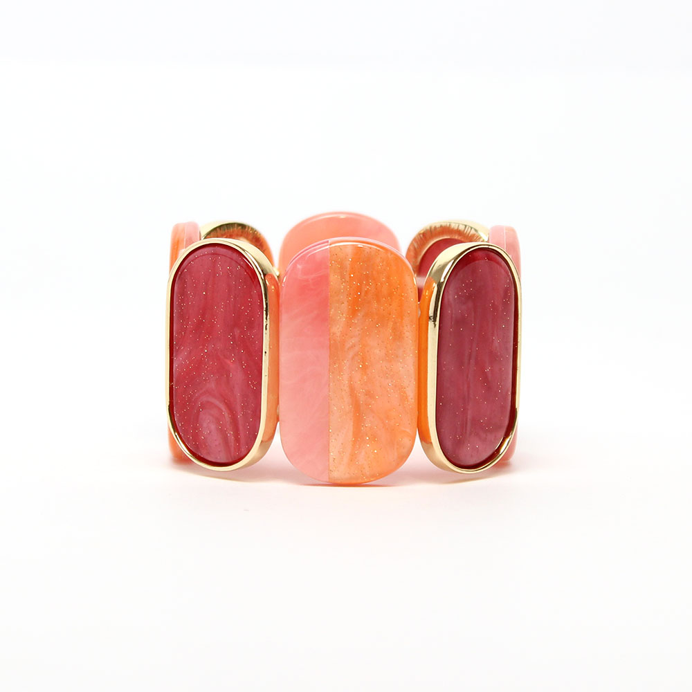 Bracciale pietre grandi arancione Margot è molto comodo, leggero e resistente. Grazie ai doppi elastici interni si adatta ad ogni misura di polso. Un bracciale da donna di grande impatto grazie alla montatura dorata che dona un tocco glamour e luminoso.
