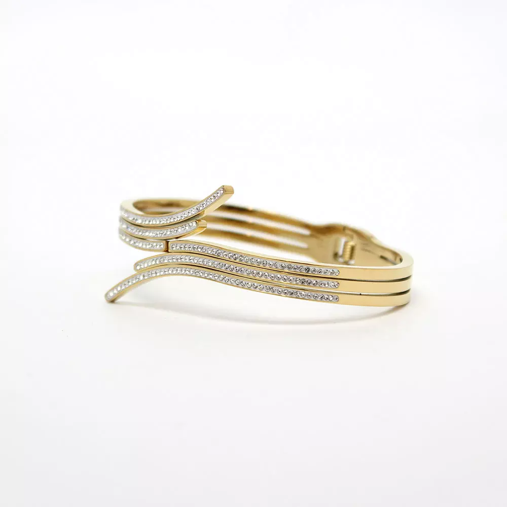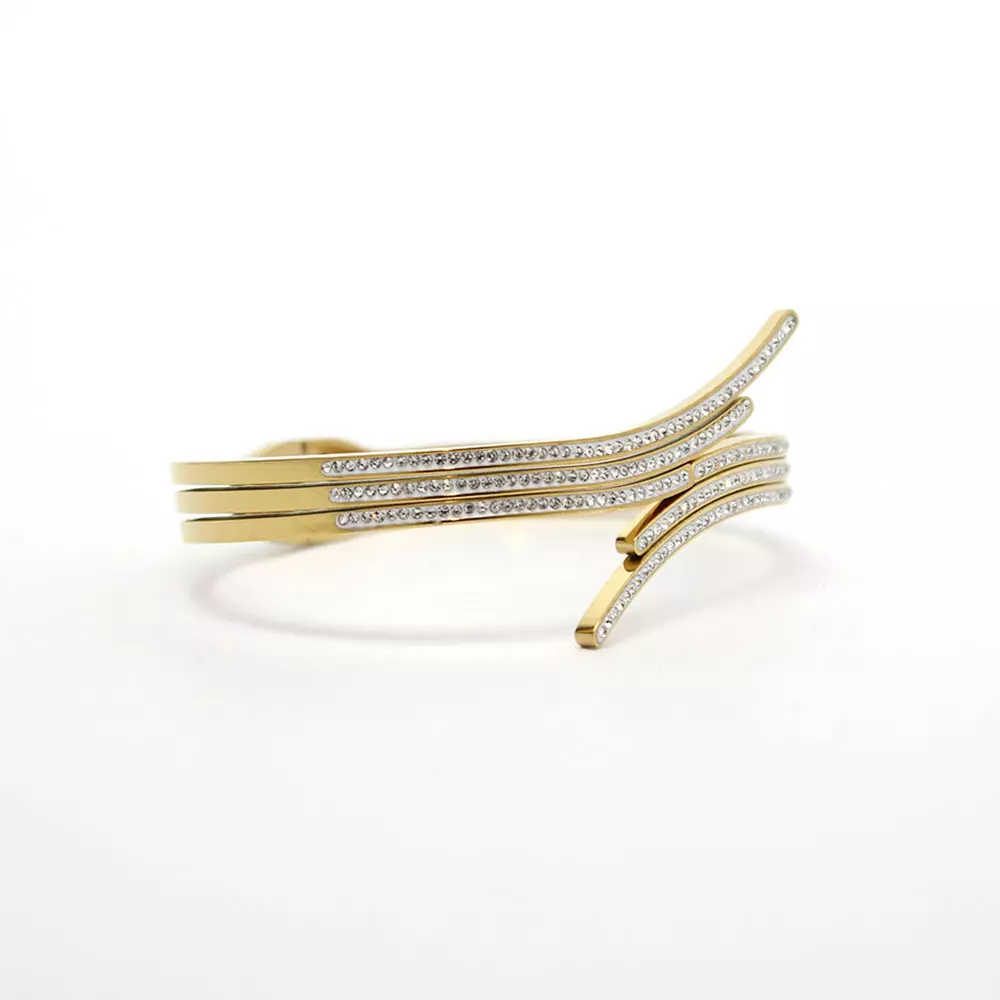 Bracciale rigido oro con strass elegante Febe è composto interamente in acciaio inossidabile e strass.