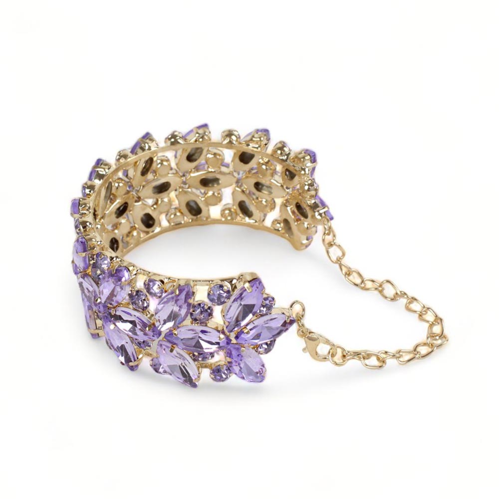 Bracciale semirigido con pietre lilla sfaccettate Alessia è un elegante bracciale in strass e metallo con catenina regolabile.