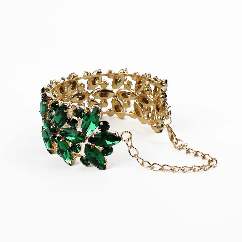 Bracciale semirigido con pietre verdi sfaccettate Alessia è un elegante bracciale in strass e metallo con catenina regolabile.