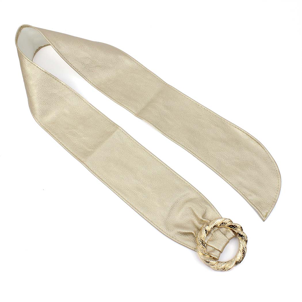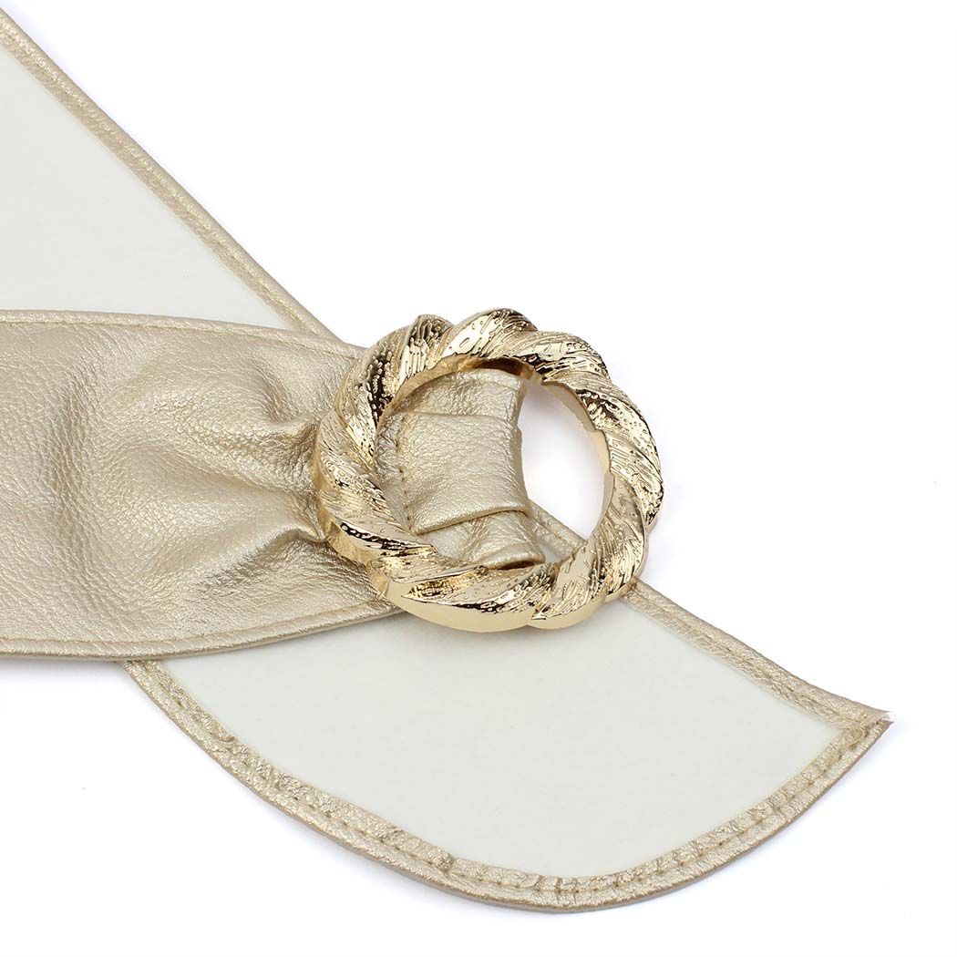 Cintura a fascia con fibbia oro in similpelle di alta qualità, la cintura presenta una fibbia rotonda in acciaio inossidabile colore oro. La cintura misura 105 x 8,5 cm e può essere regolata alla larghezza desiderata. Ideale per rendere più particolare un outfit basic o casual.