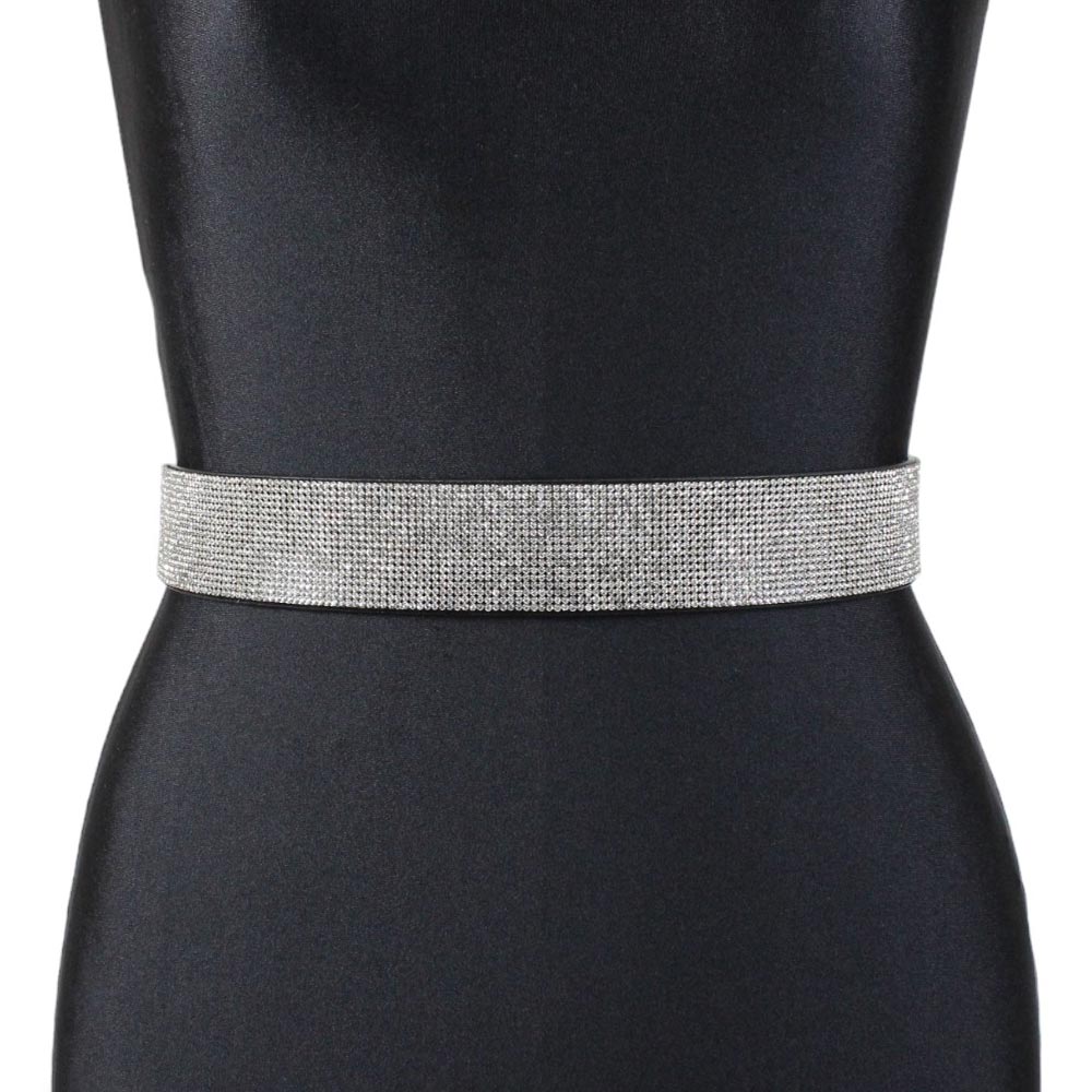 Cintura con strass elastica nera Missy è composta da una fascia elastica nera alta 4 cm ricoperta da 40 cm di strass.