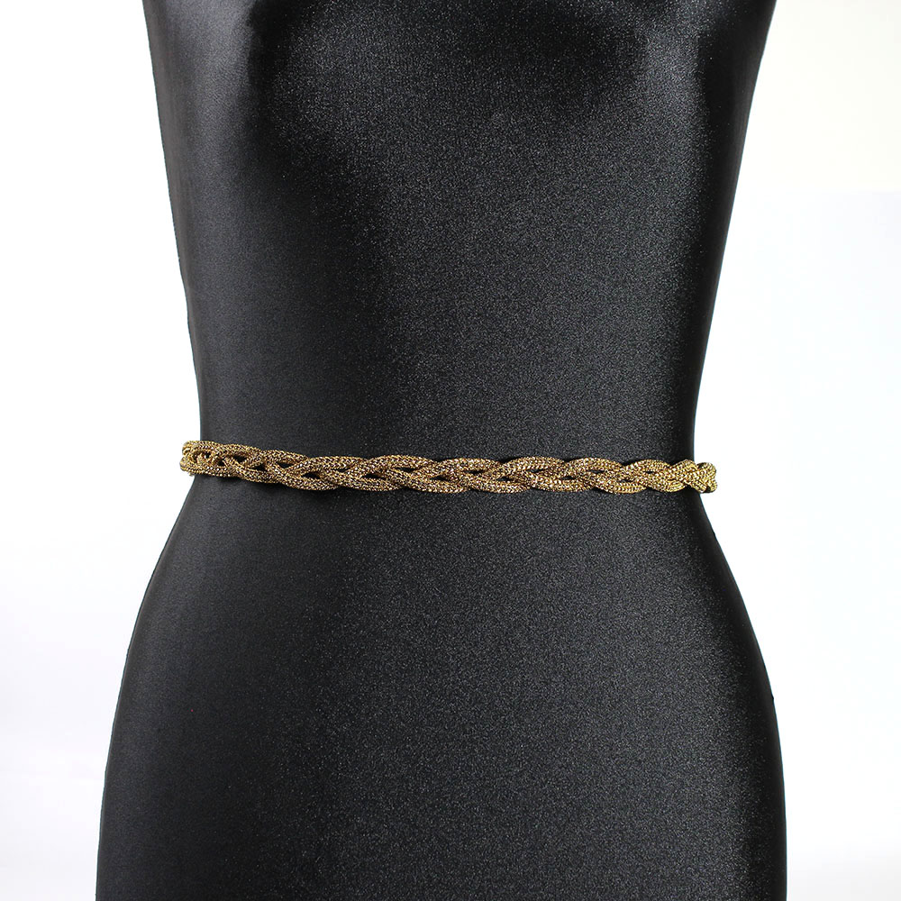 Cintura con strass oro intrecciata Vittoria misura 115 x 1,5 cm.