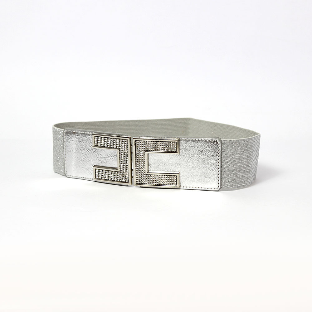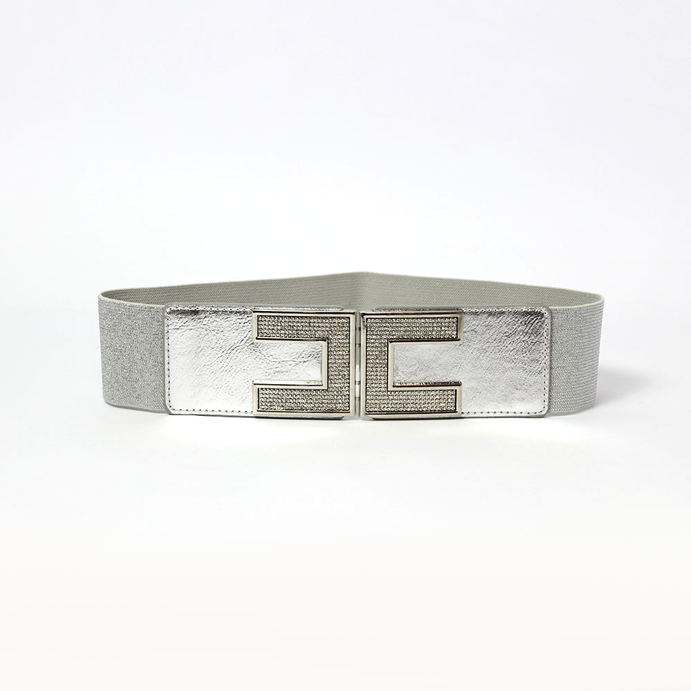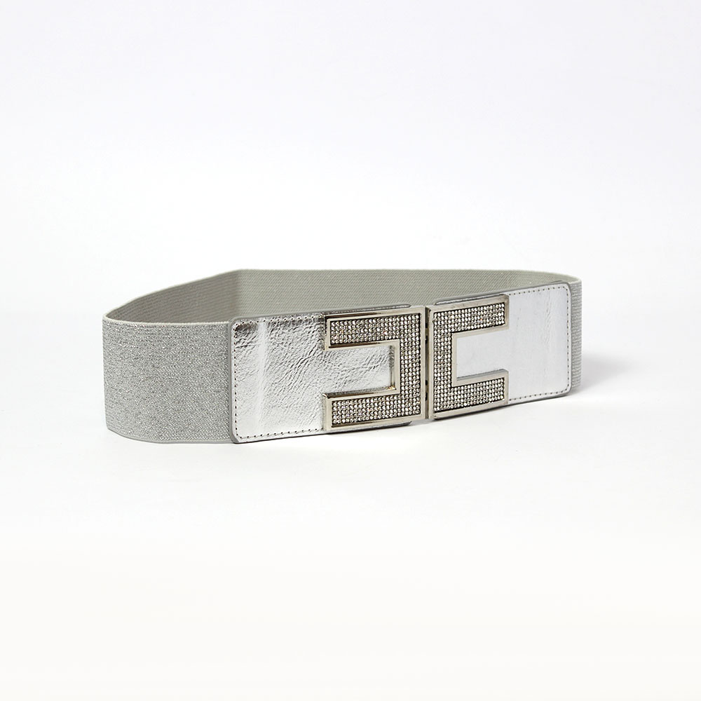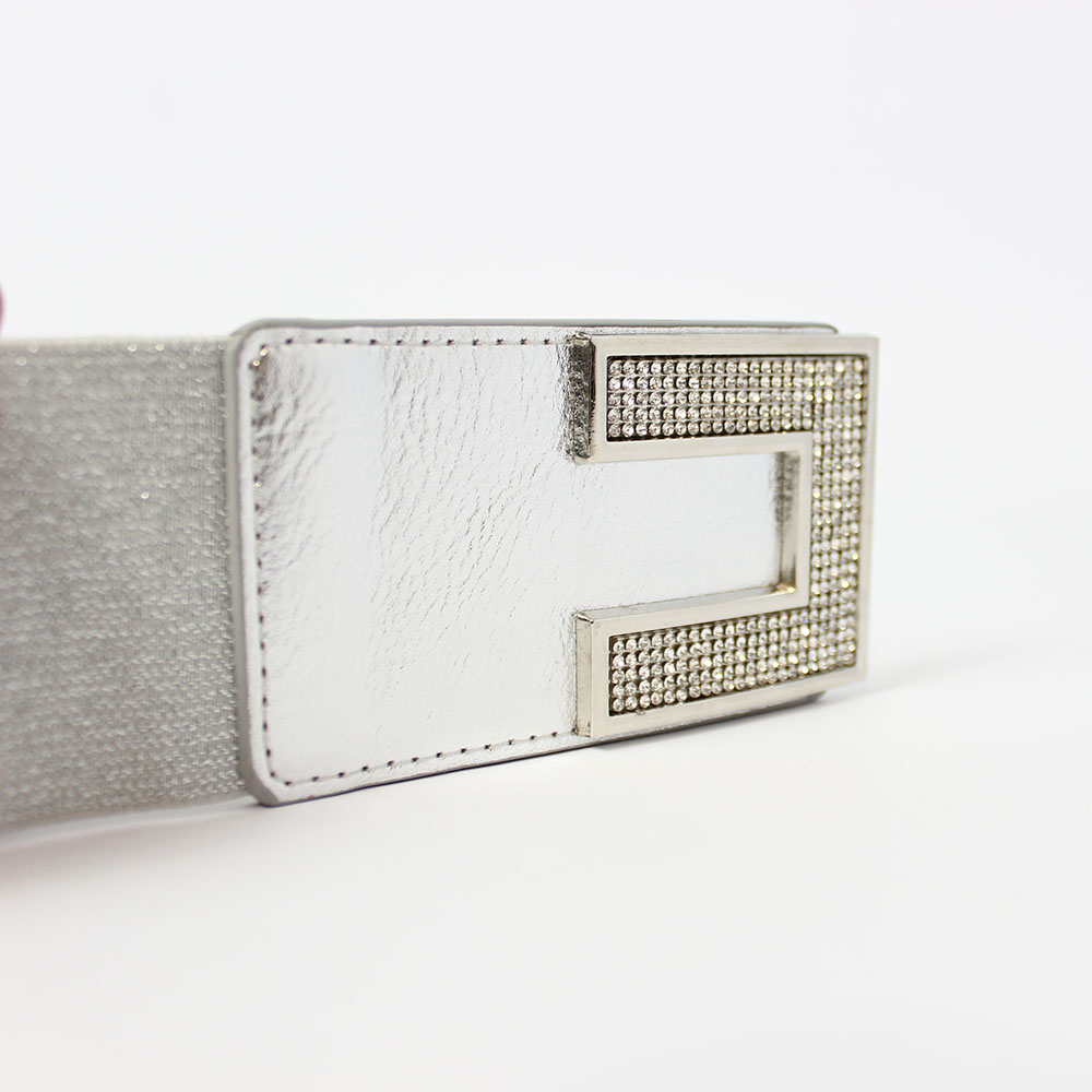 Cintura elastica argento con strass Luna presenta una fibbia a C molto particolare.