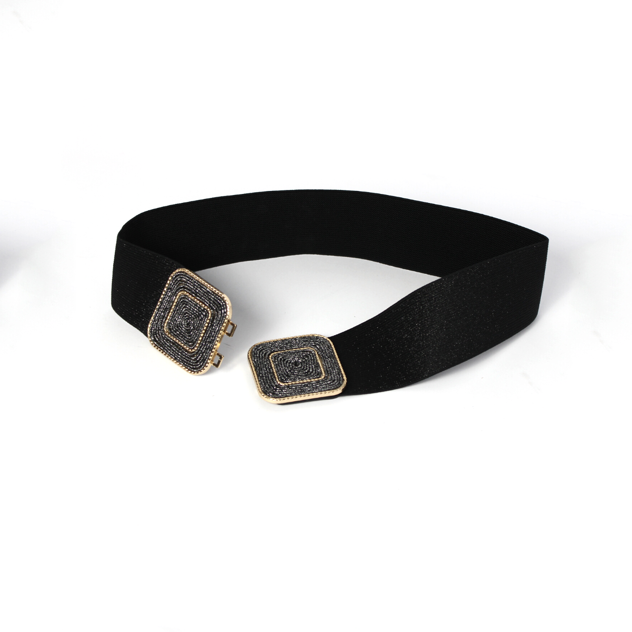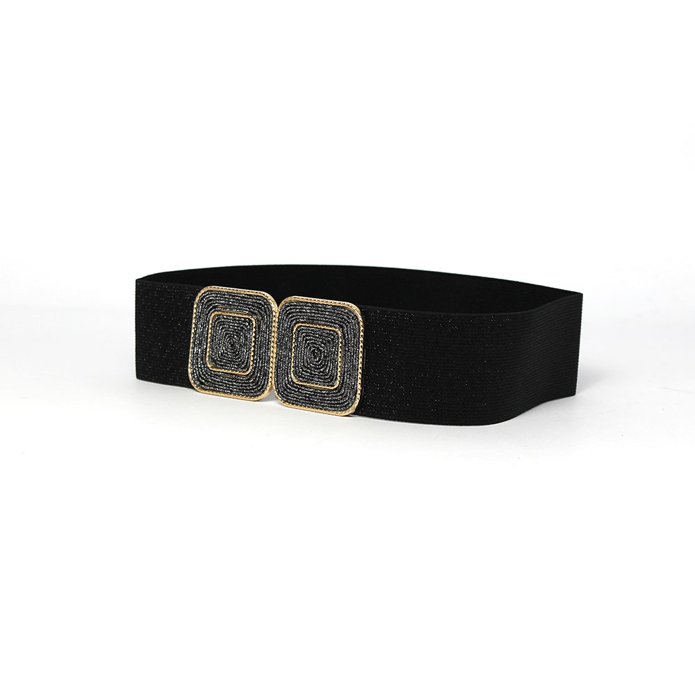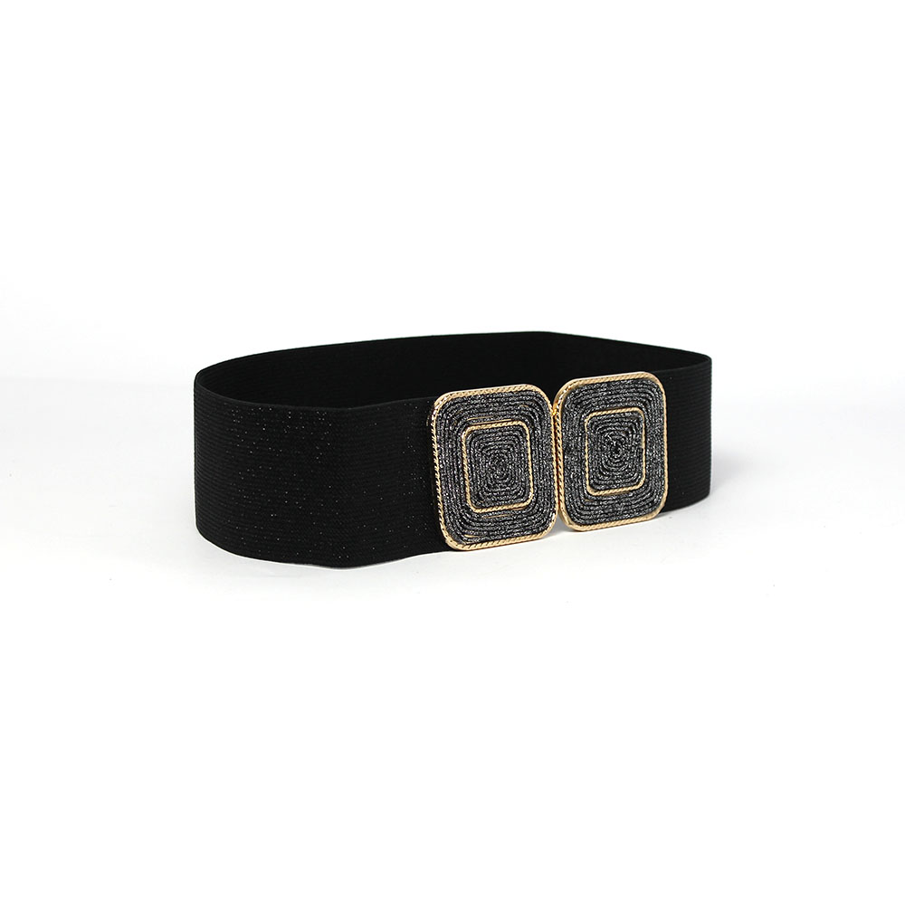 La particolare fibbia quadrata è composta da un cordoncino brillantinato avvolto all’interno di una fibbia quadrata color oro che dona a questa cinta un design affascinante.