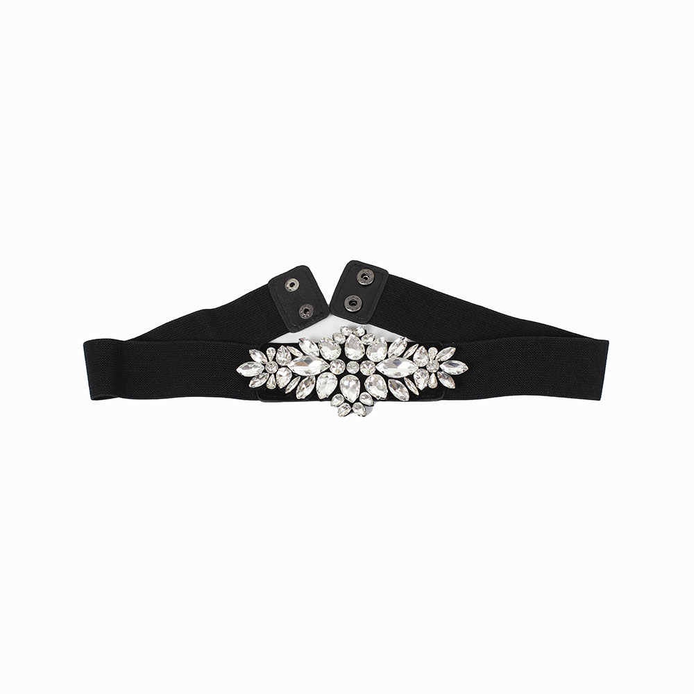 Cintura elastica nera con pietre argento Afrodite è una fascia elasticizzata con chiusura a bottoncini a pressione.