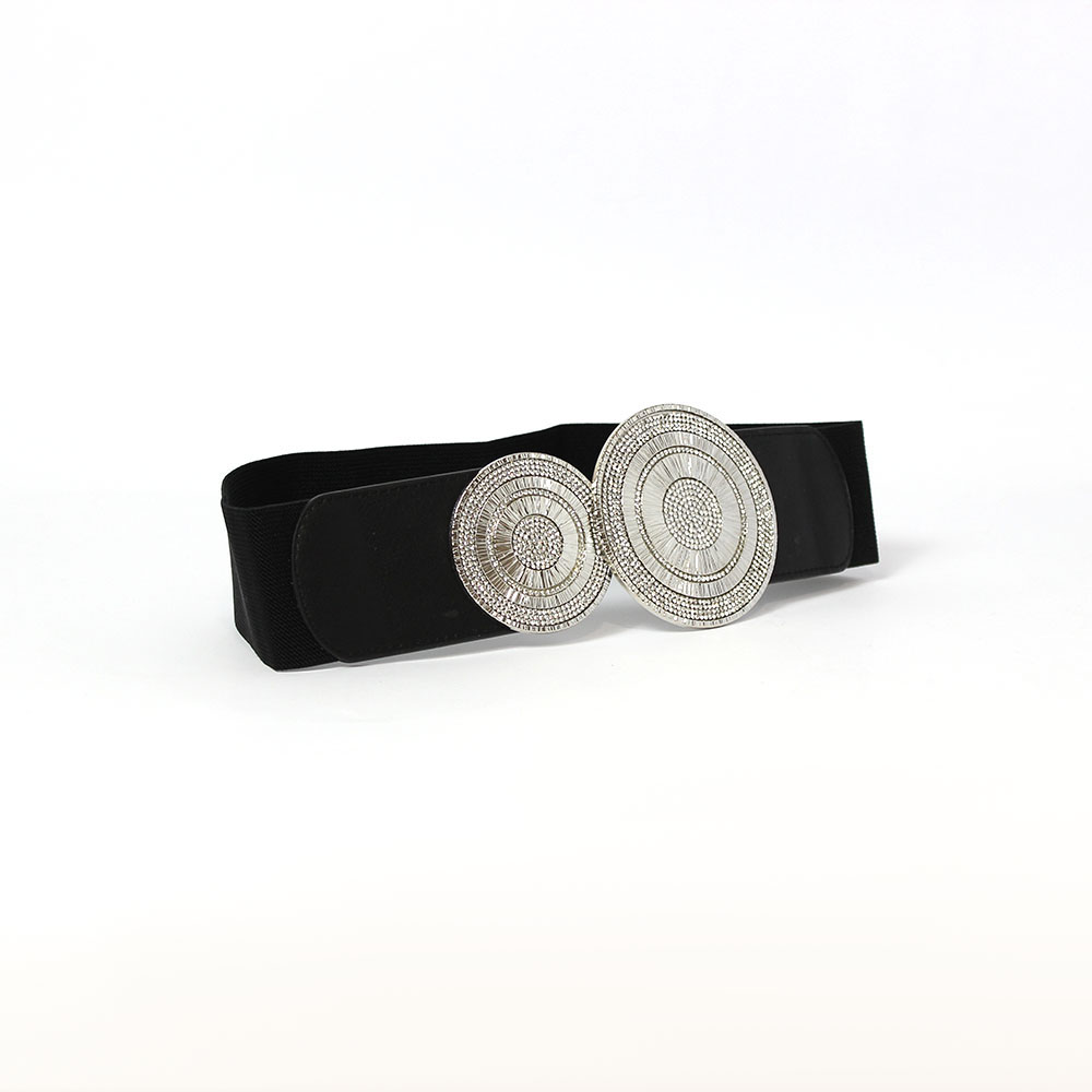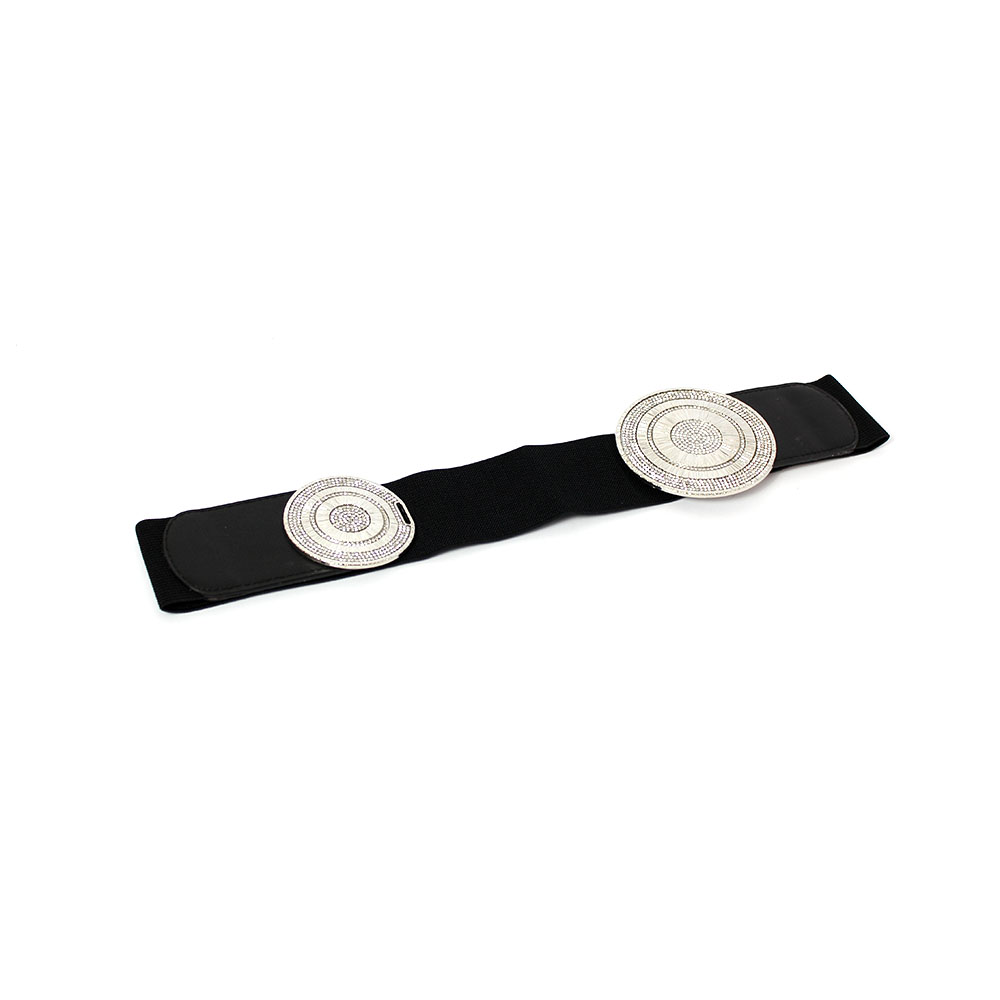 Cintura elastica nera con fibbia argento Ester ha una chiusura frontale a incastro, forte e resistente.
