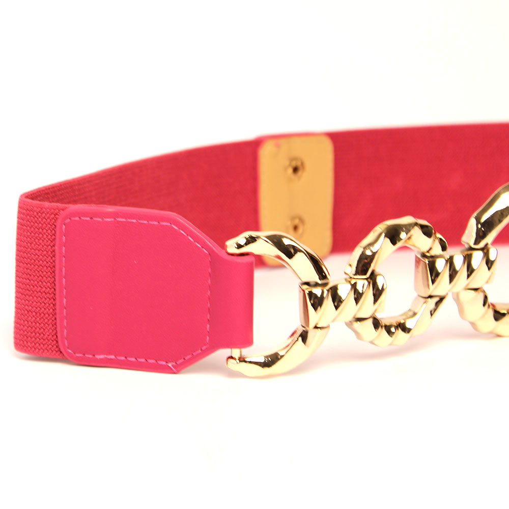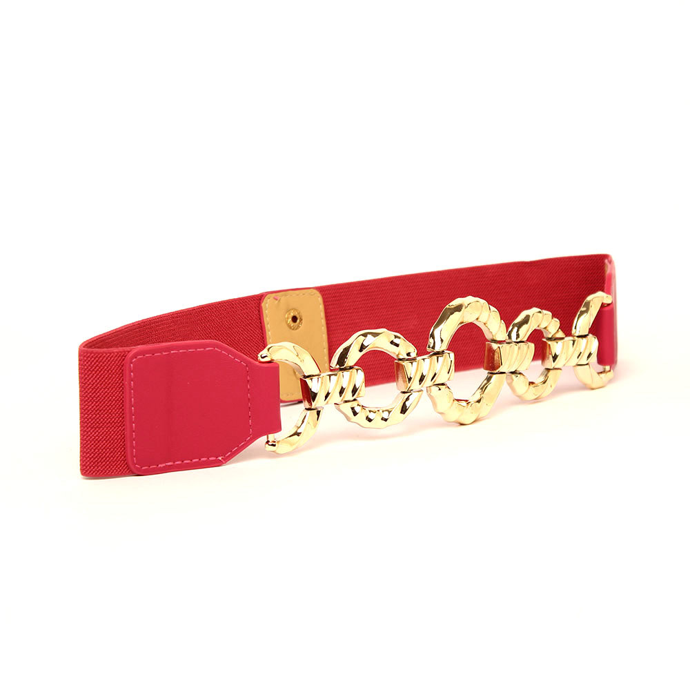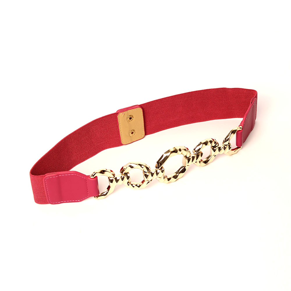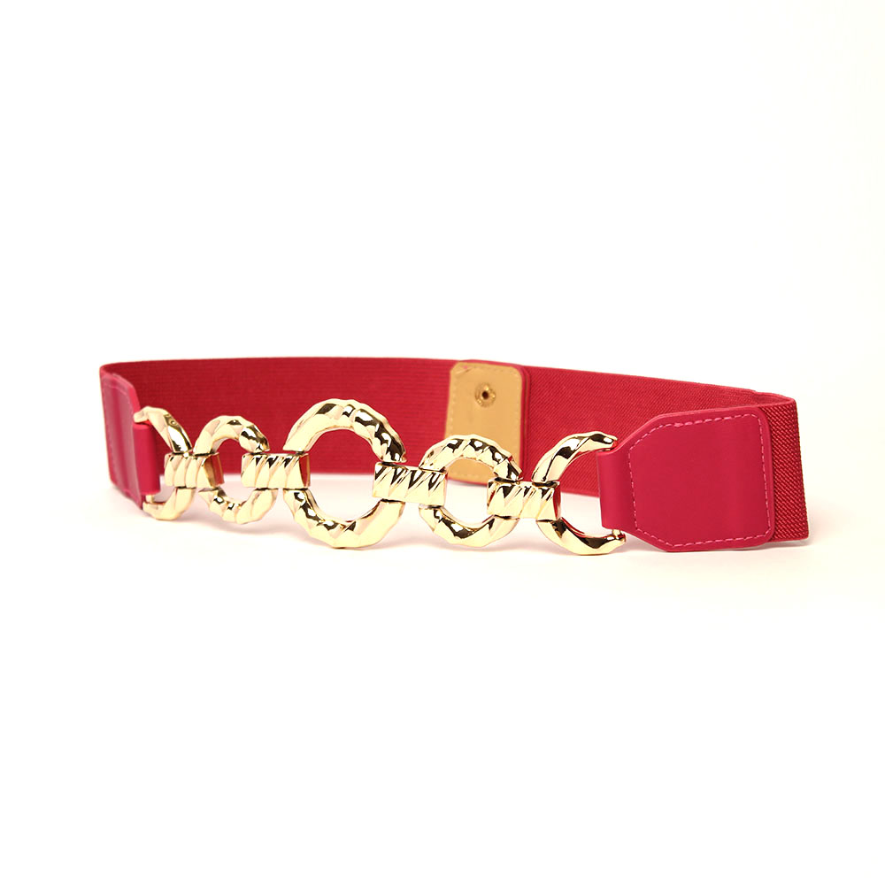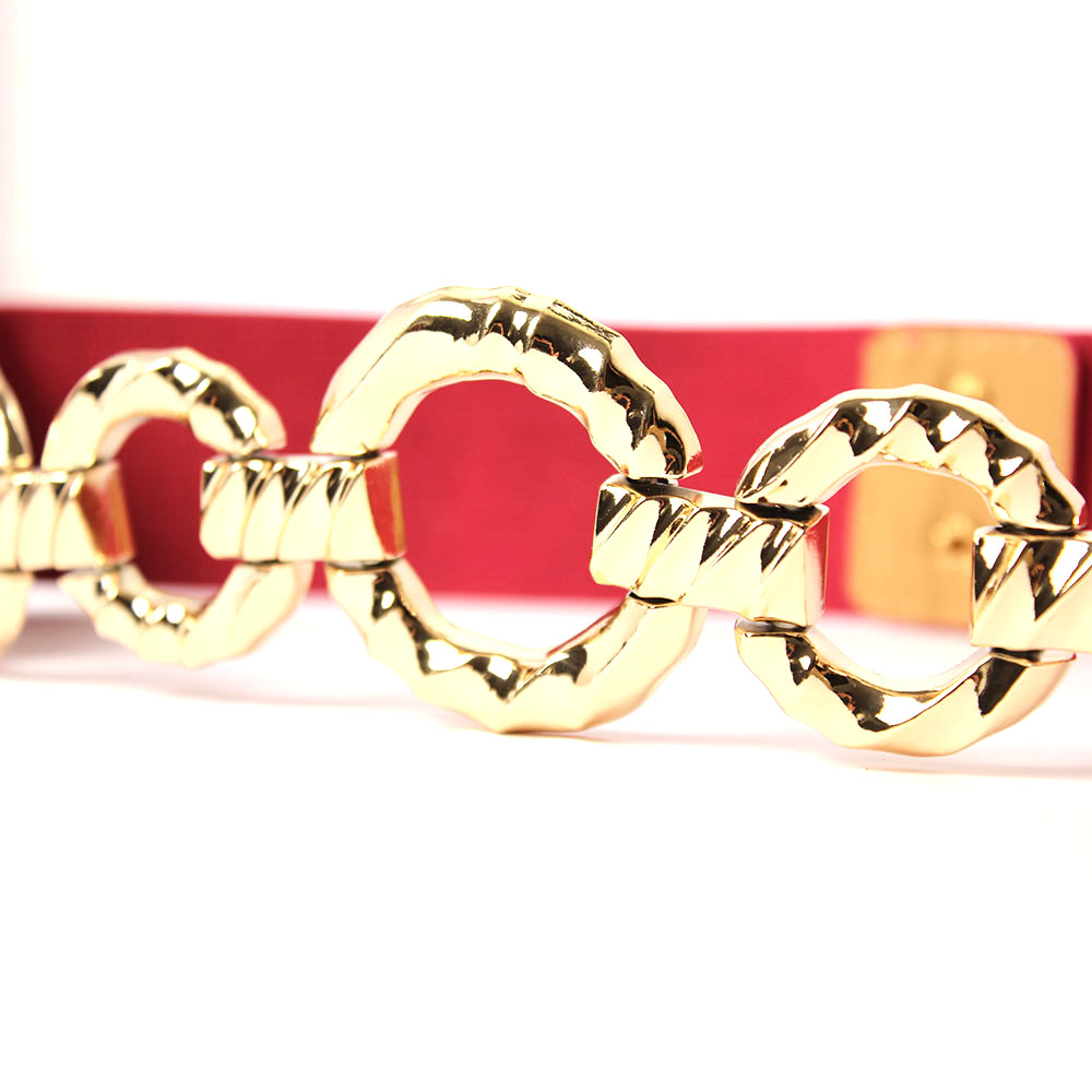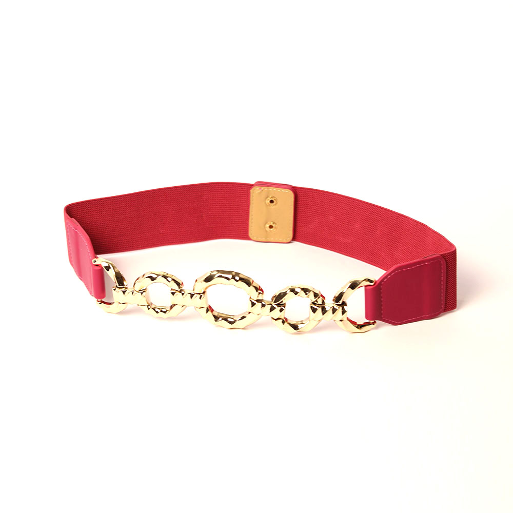 La cinta presenta nella parte frontale cinque anelli in metallo con effetto martellato in color oro.