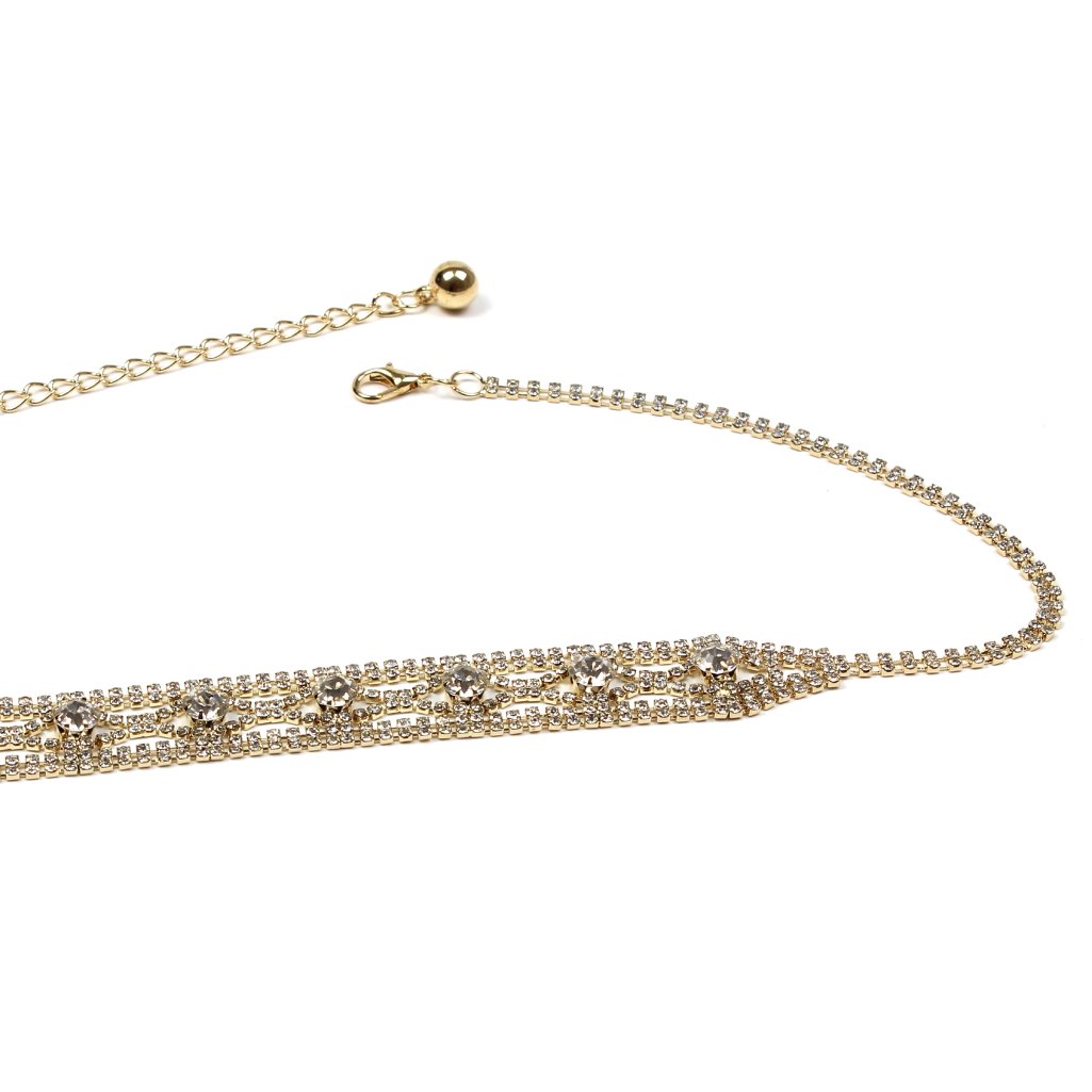 Cintura elegante con strass oro Elisabetta è l’accessorio perfetto per completare i tuoi look con un tocco di eleganza. Il design ricco di strass rende la cintura particolare e raffinata. Con una lunghezza totale di 75 cm e una catenina di prolunga di 35 cm, avrai la flessibilità di adattare la cintura alla tua taglia e al tuo abbigliamento. La chiusura è a moschettone.