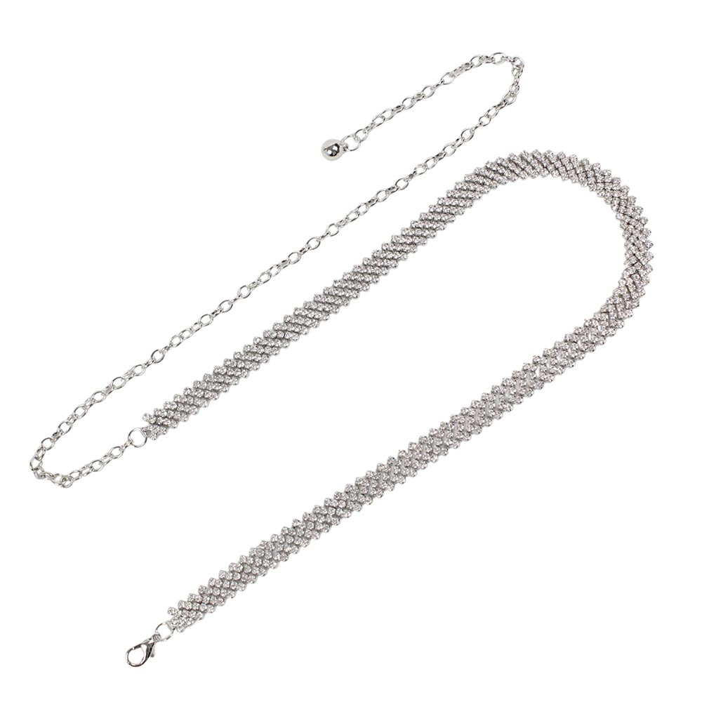 Cintura gioiello con strass argento Musa è l’accessorio perfetto per aggiungere un tocco di lusso scintillante al tuo look.