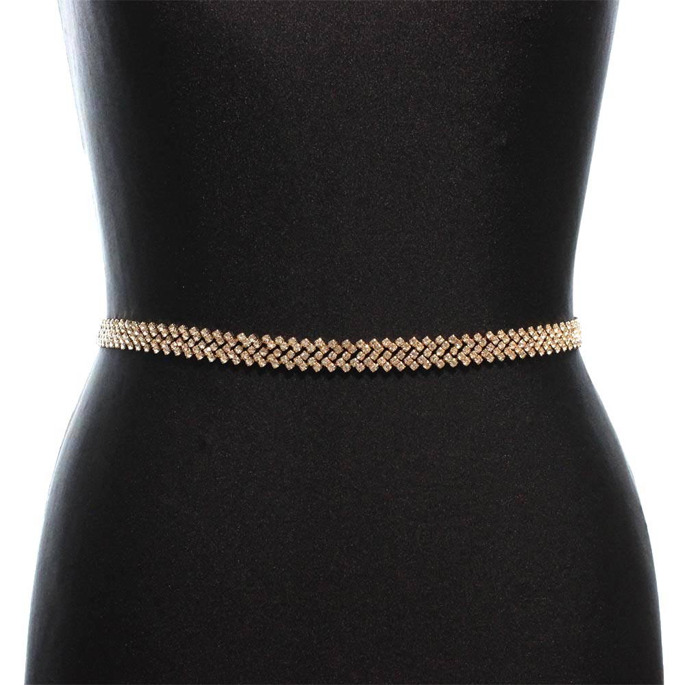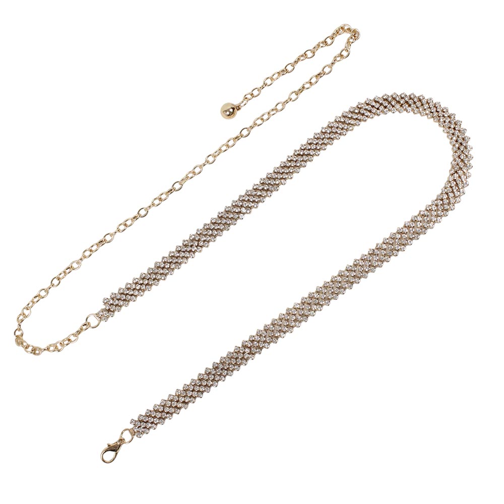 Cintura gioiello con strass oro Musa è l’accessorio perfetto per aggiungere un tocco di lusso scintillante al tuo look.