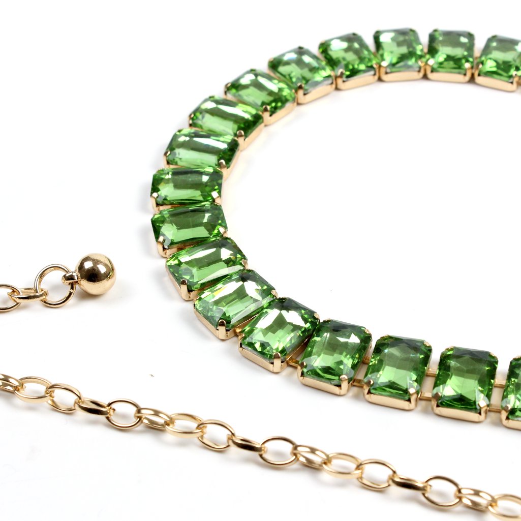 Cintura gioiello pietre sfaccettate verde Desy