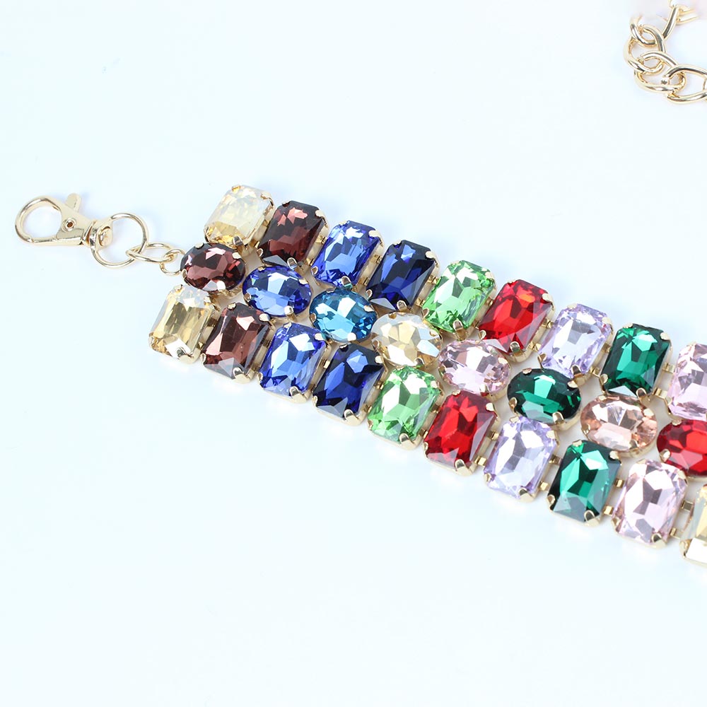 Cintura multicolore da cerimonia con pietre sfaccettate Venere è composta da tre file di pietre sfaccettate incastonate su una base metallica color oro.
