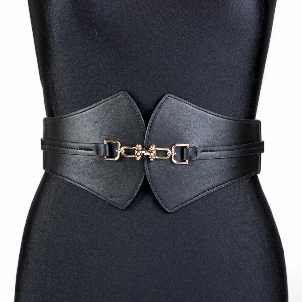 Cintura nera con fibbia grande Sandra è composta da una doppia fibbia in pelle sintetica nera ed una fascia elastica.