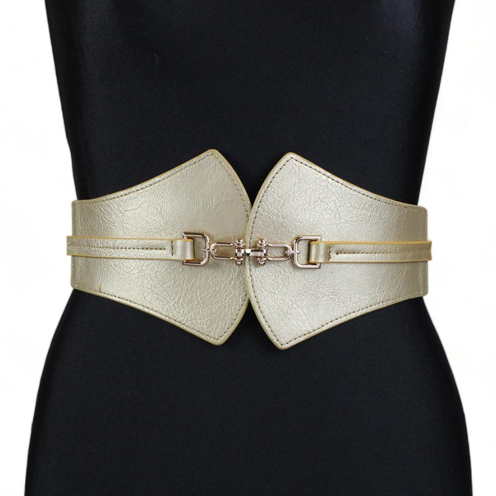Cintura oro con fibbia grande Sandra è composta da una doppia fibbia in pelle sintetica color oro ed una fascia elastica.