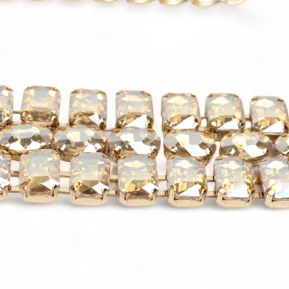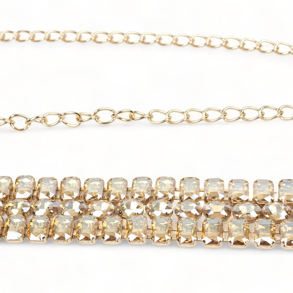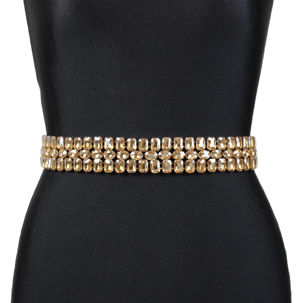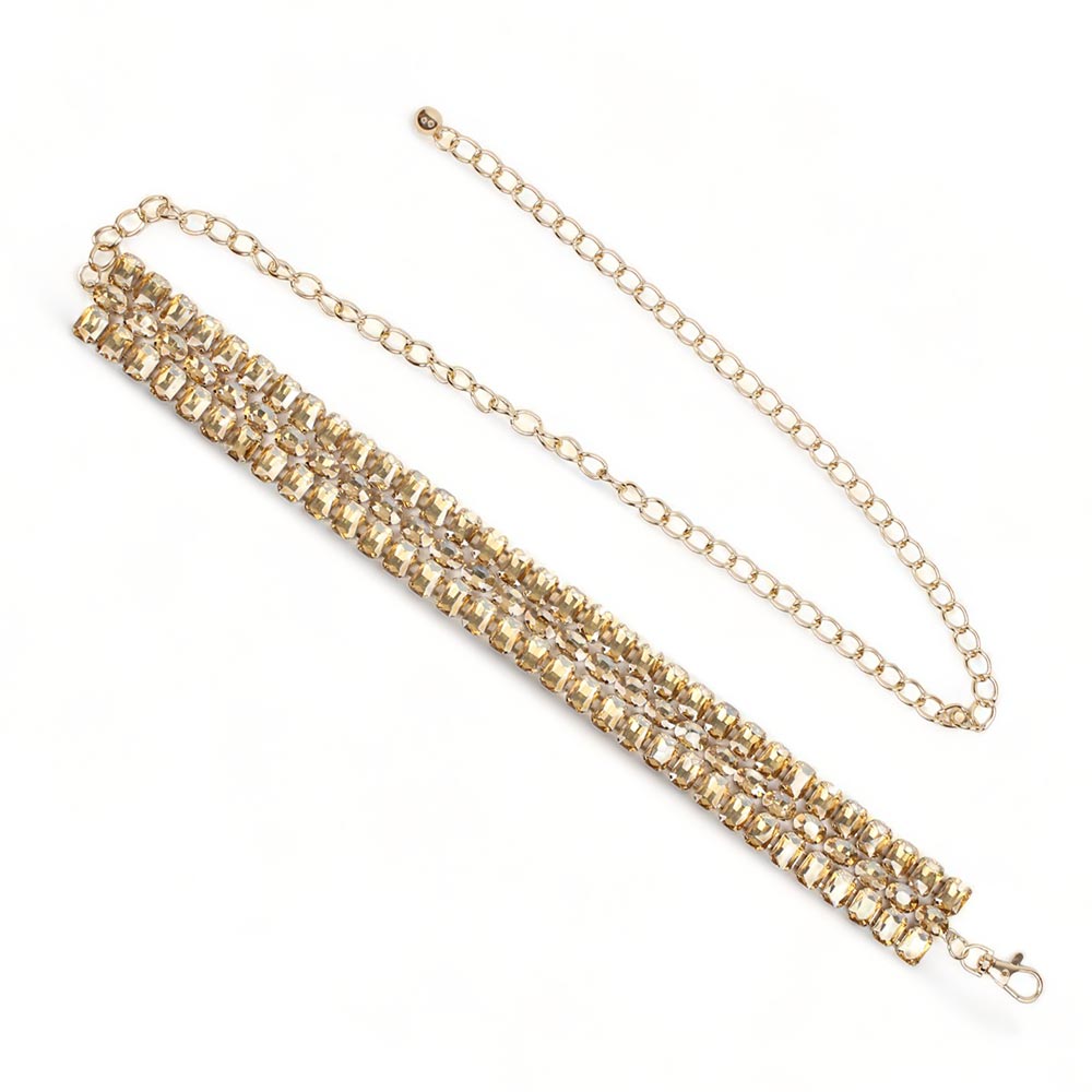 Cintura oro da cerimonia con pietre sfaccettate Venere è composta da tre file di pietre sfaccettate oro incastonate su una base metallica color oro.
