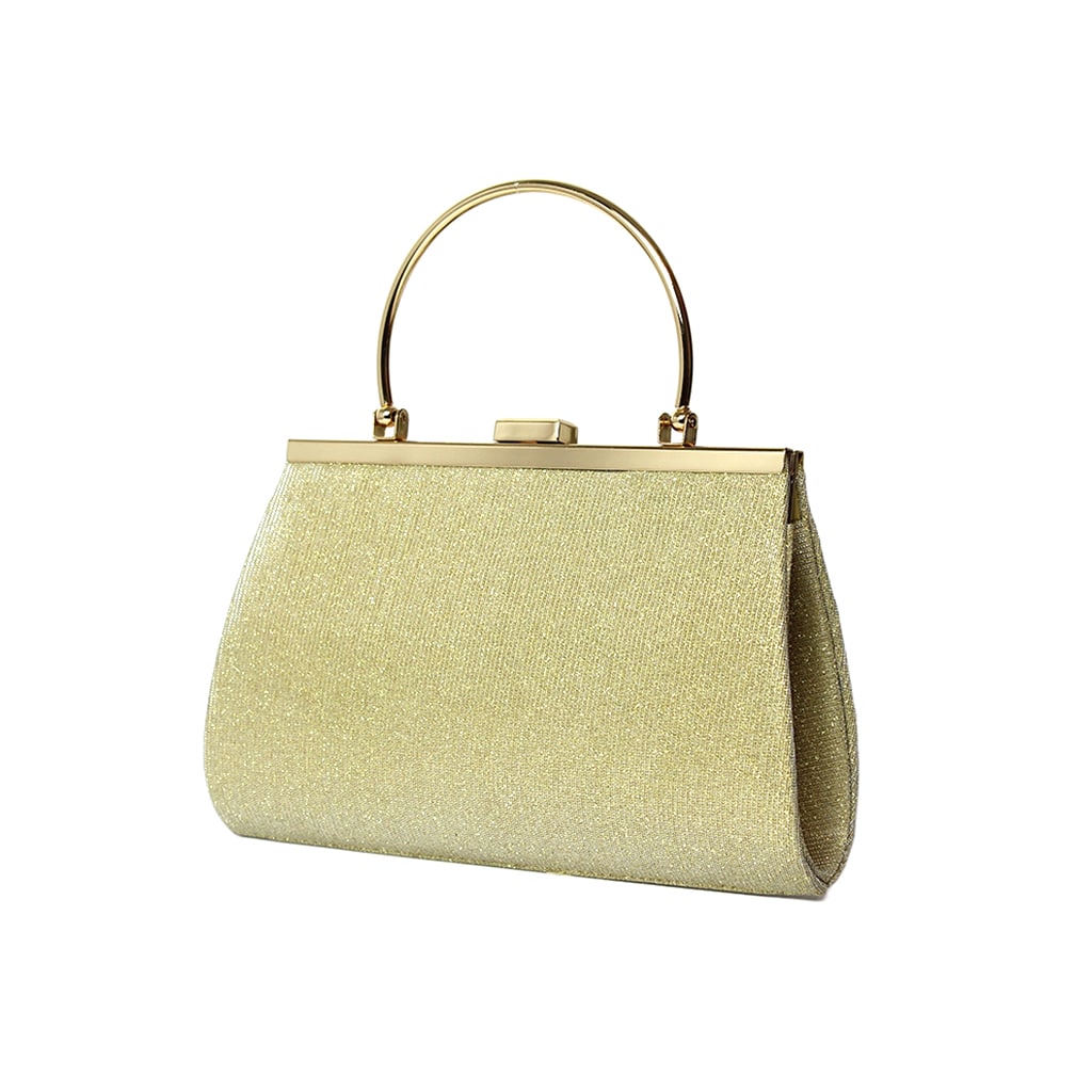 Clutch da cerimonia elegante oro Jasmine con manico alto otto centimetri.