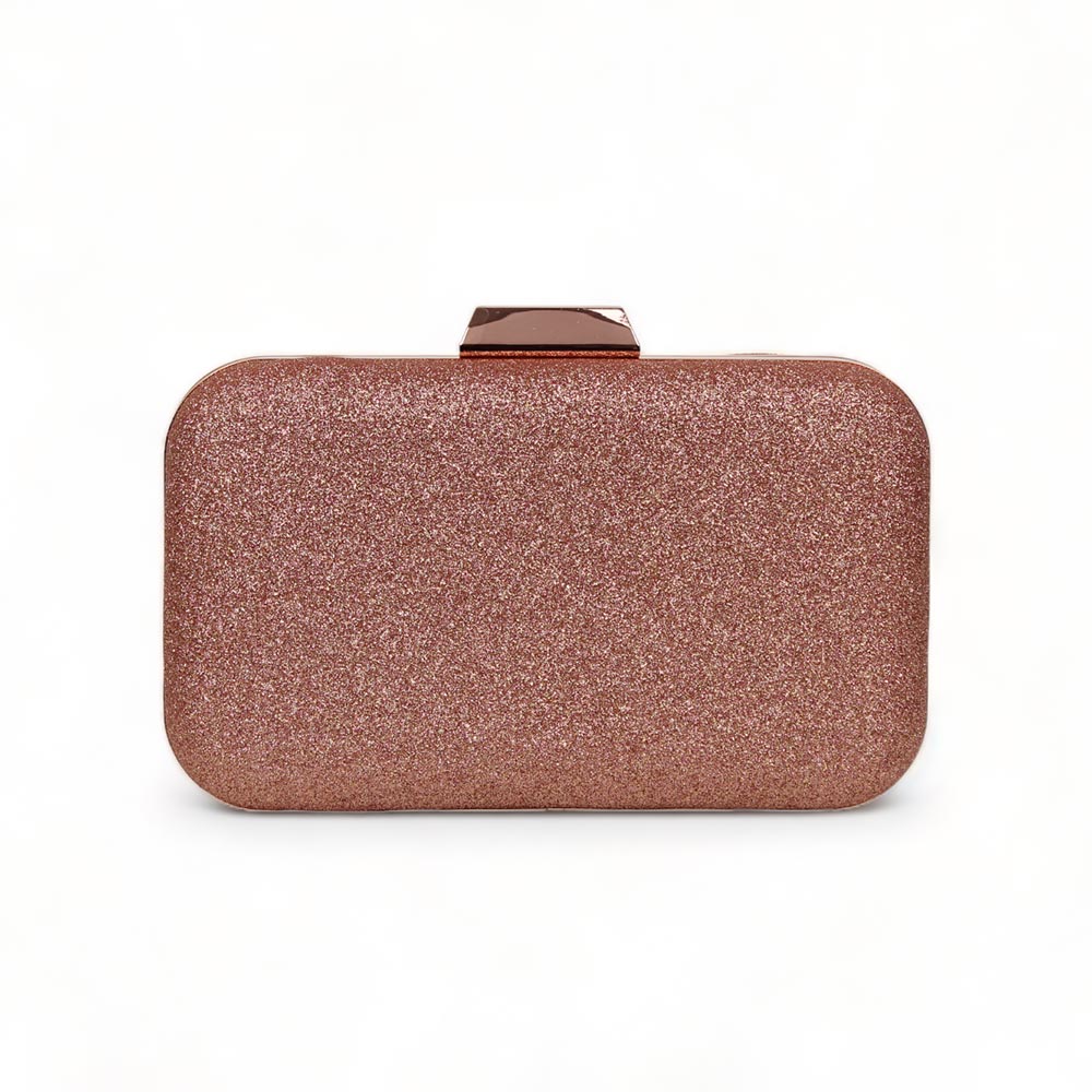 Che tu stia andando a una festa, a un matrimonio o a un evento glamour, questa Clutch oro rosa elegante con glitter Monica sarà il tuo accessorio preferito per brillare.