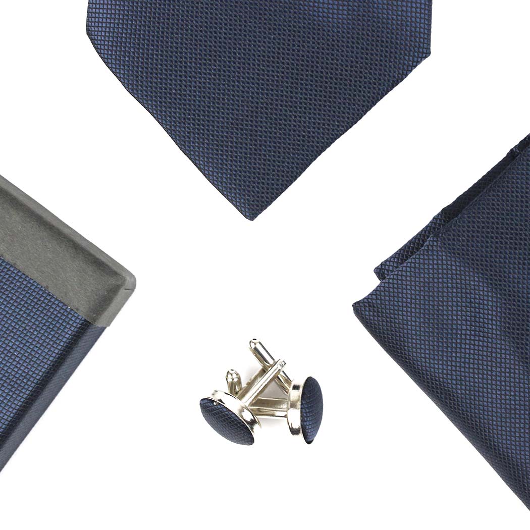 Cravatta blu con fazzoletto e gemelli Microfantasia
