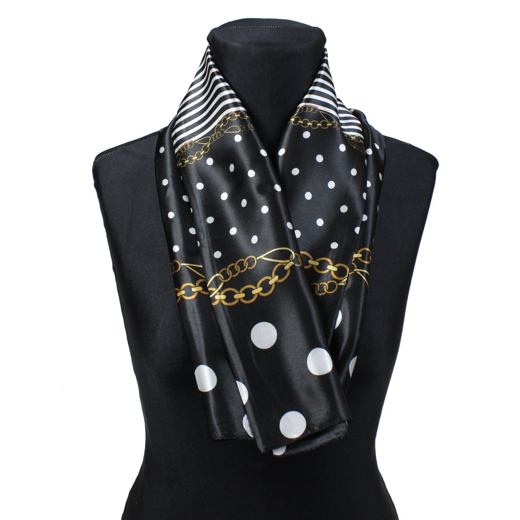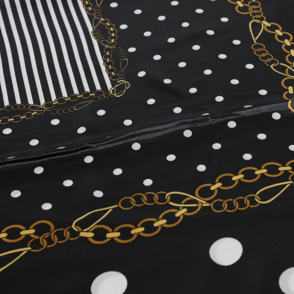 Foulard nero bianco e oro 90×90, perfetto per coloro che cercano un accessorio che esprima creatività e stile unici, ideale per aggiungere un tocco di classe al tuo outfit.