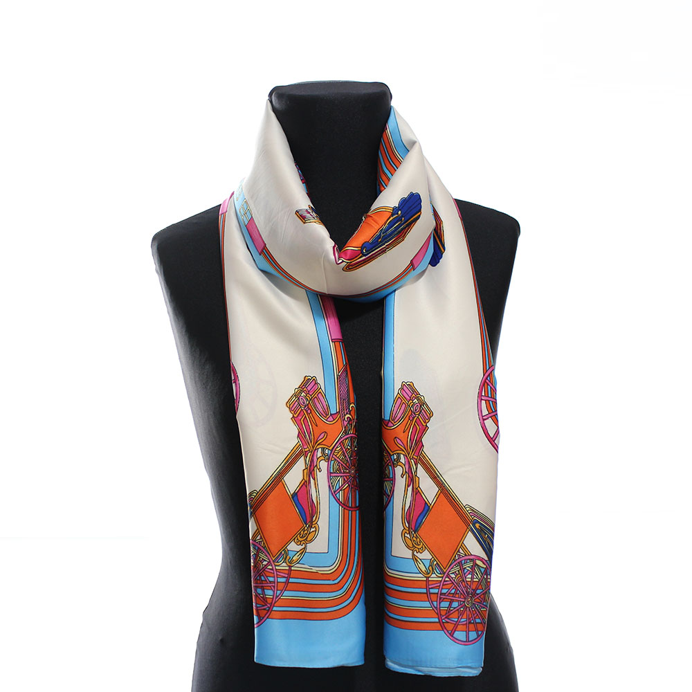 Foulard seta multicolor azzurro Primula misura 180×70 cm