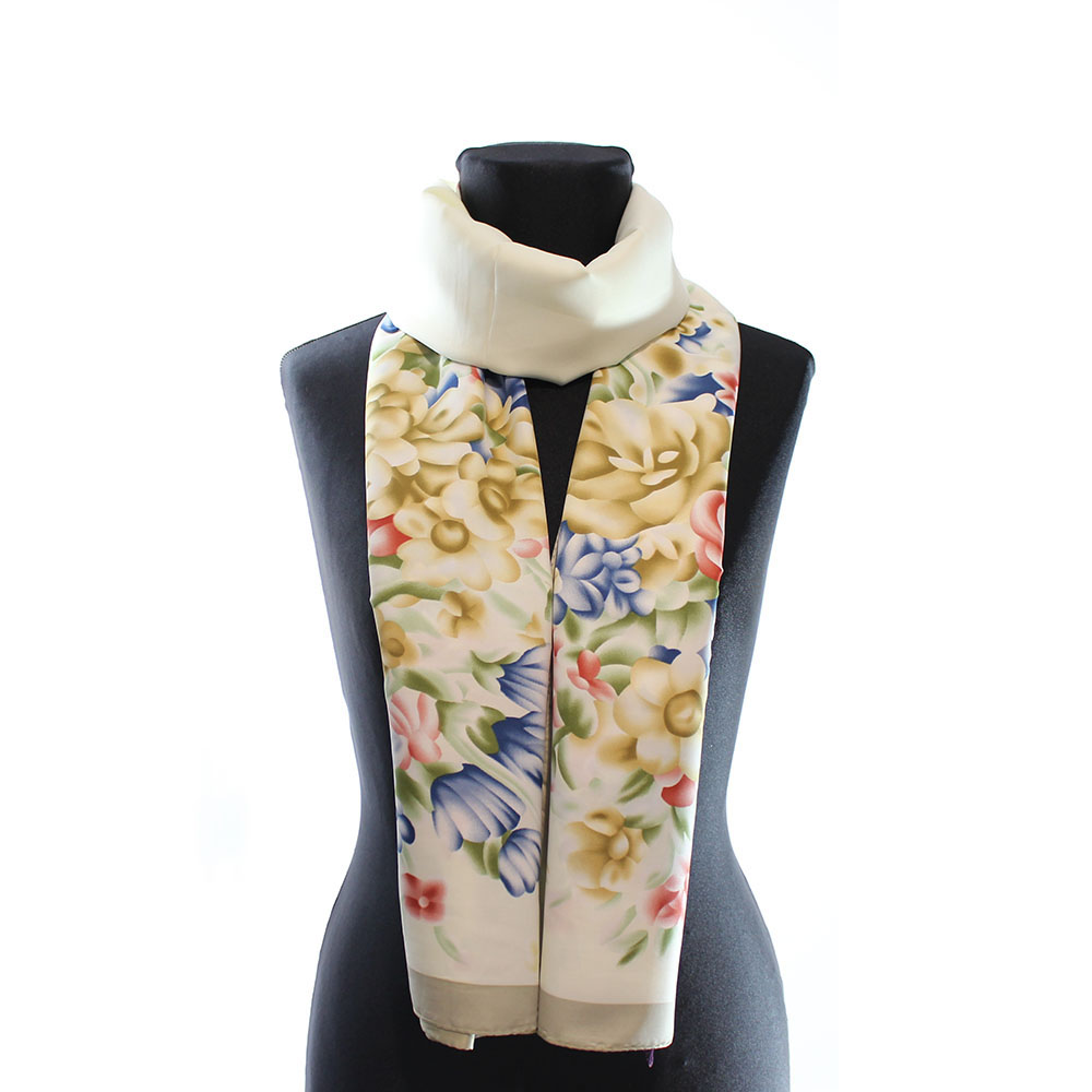 Foulard seta multicolor bianco Papavero è rettangolare e misura 180 x 70 cm.