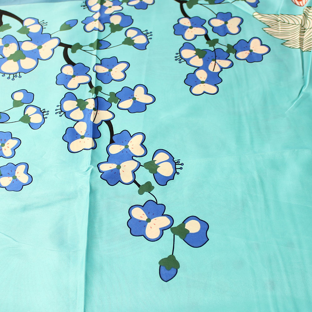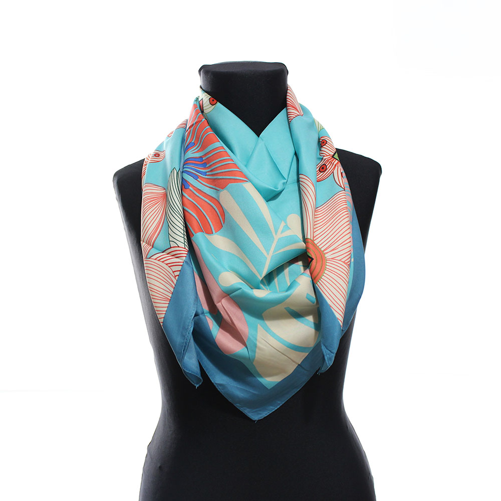 Foulard seta quadrato celeste Ibis è 100% in mano seta con particolare fantasia multicolore.